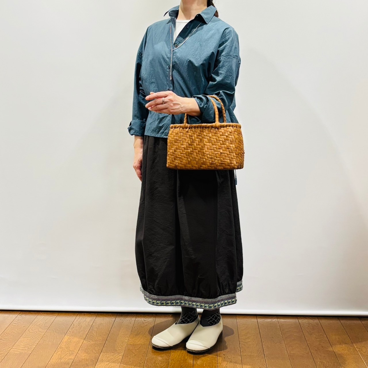 使い込むほどに馴染む風合い、裾を紐で調節できるので、