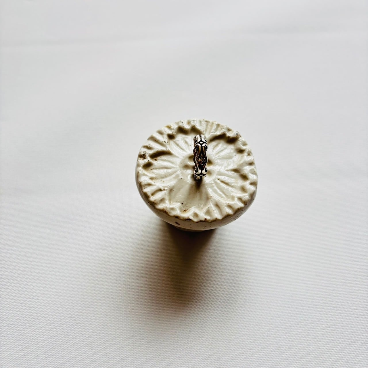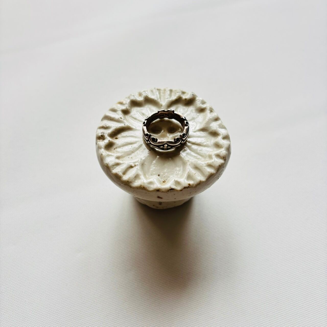 お花の模様を型押ししたシルバーリング。