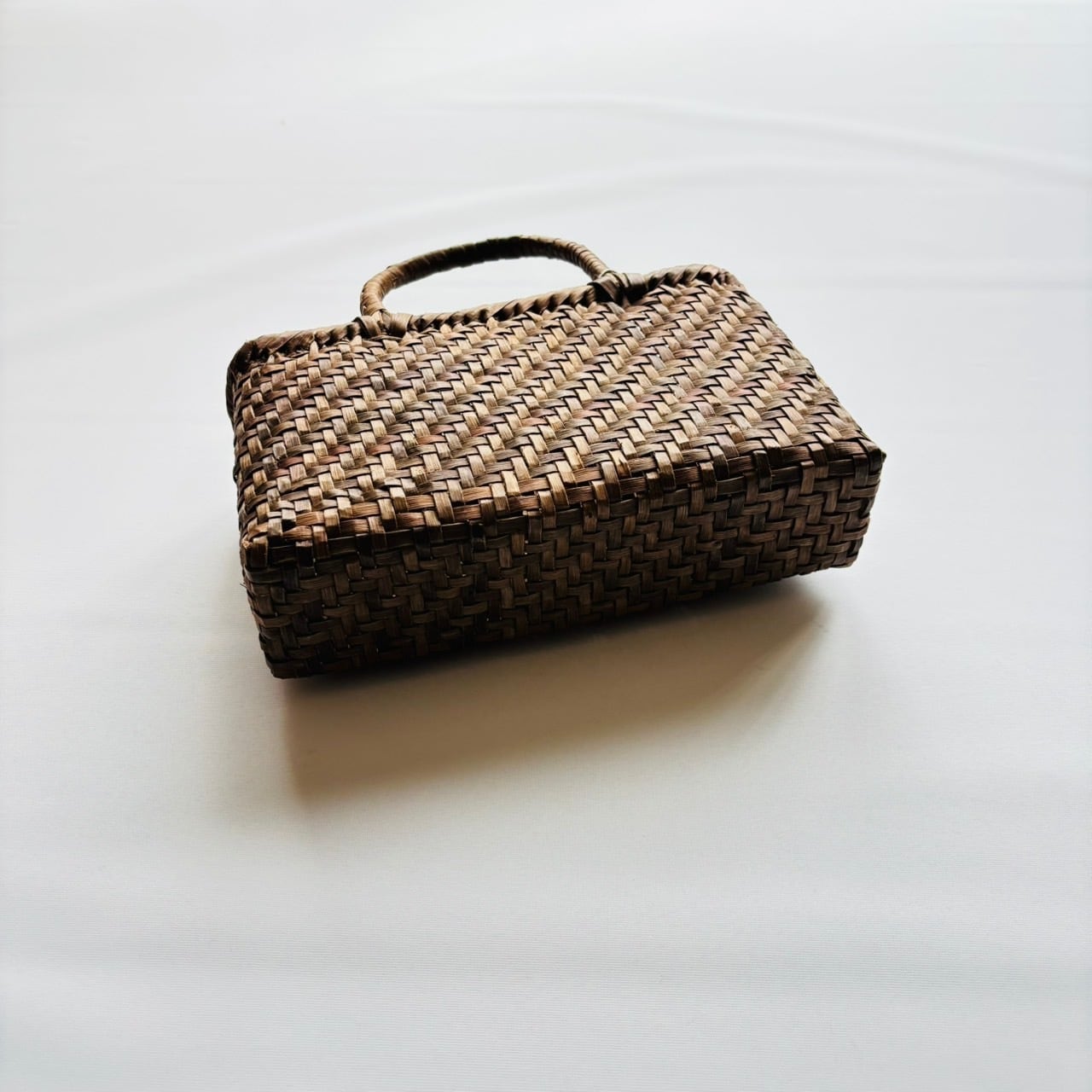 小ぶりの角形くるみ籠バッグ。