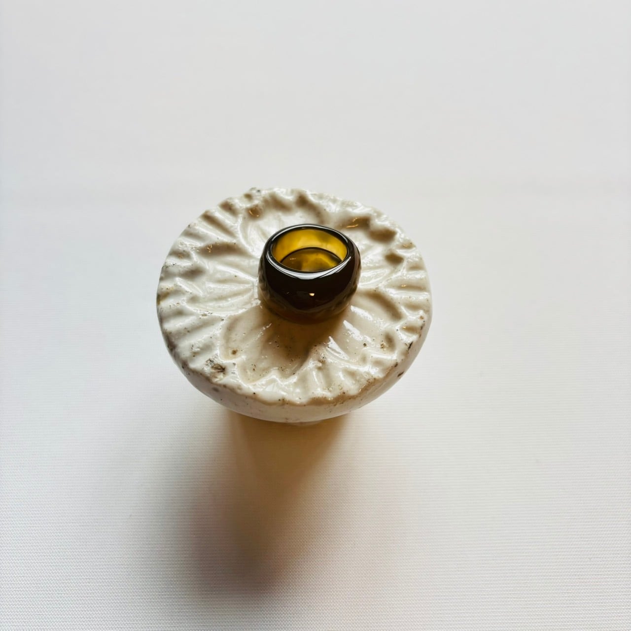 スモーキーなカーキ色のカーネリアンの甲丸リング。