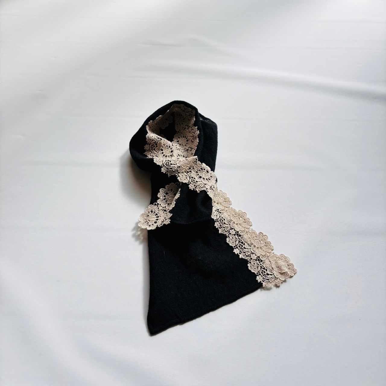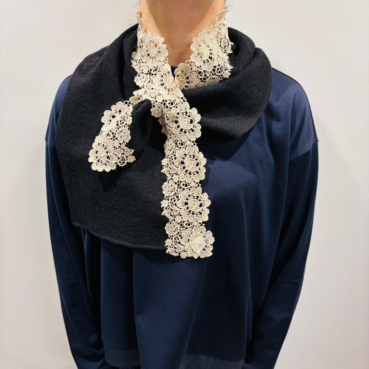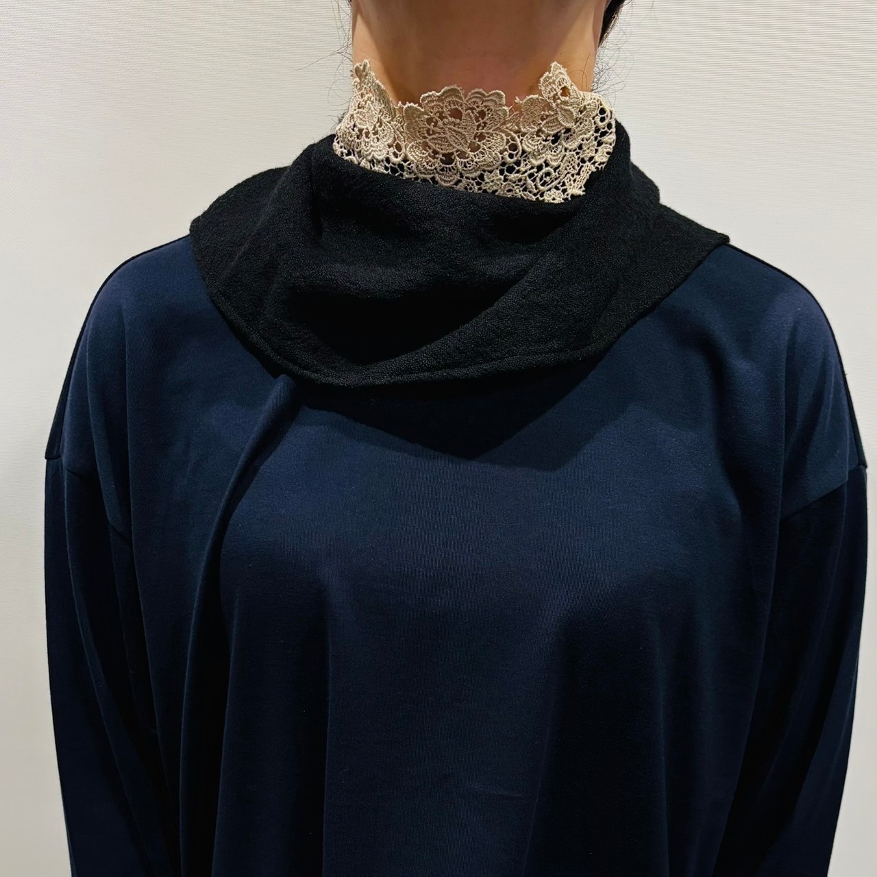 ウールガーゼ素材にケミカルレースをあしらった
