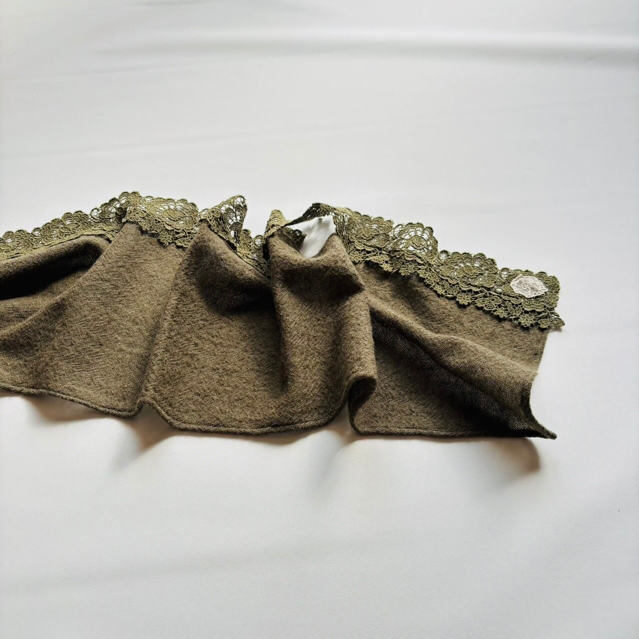 ウールガーゼ素材にケミカルレースをあしらった
