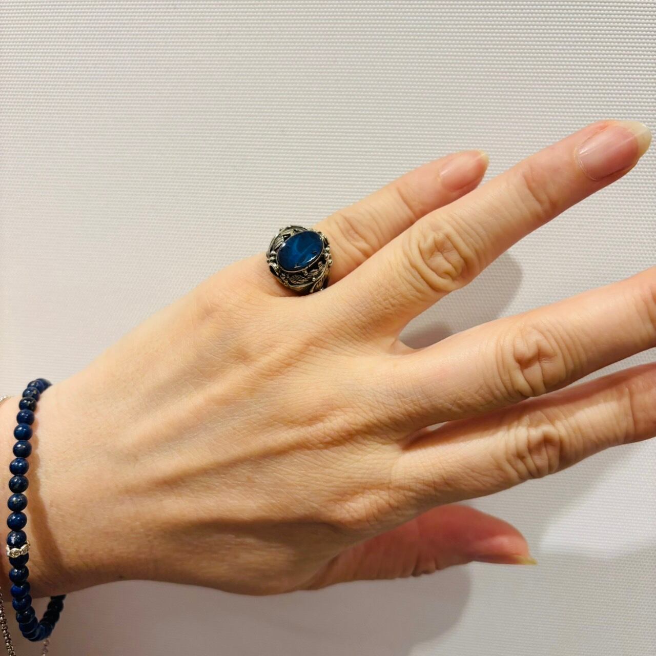 葉っぱと蔦のモチーフの台座にボルダーオパールを