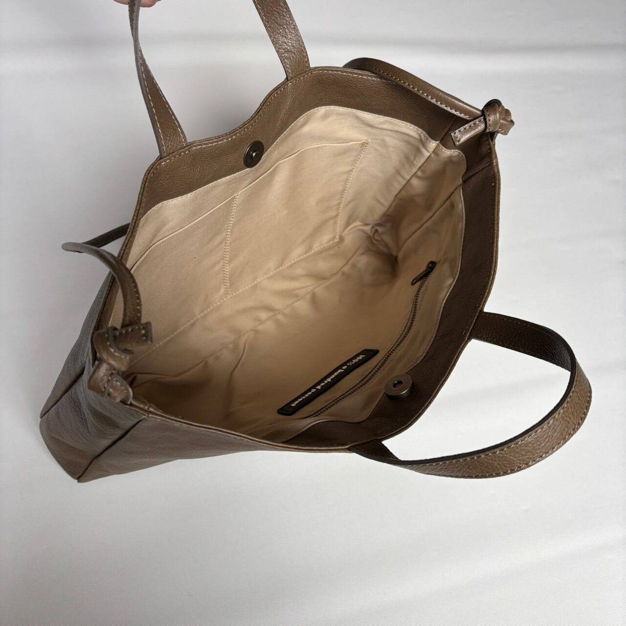 横長で開口部が大きいので出し入れしやすい手提げと