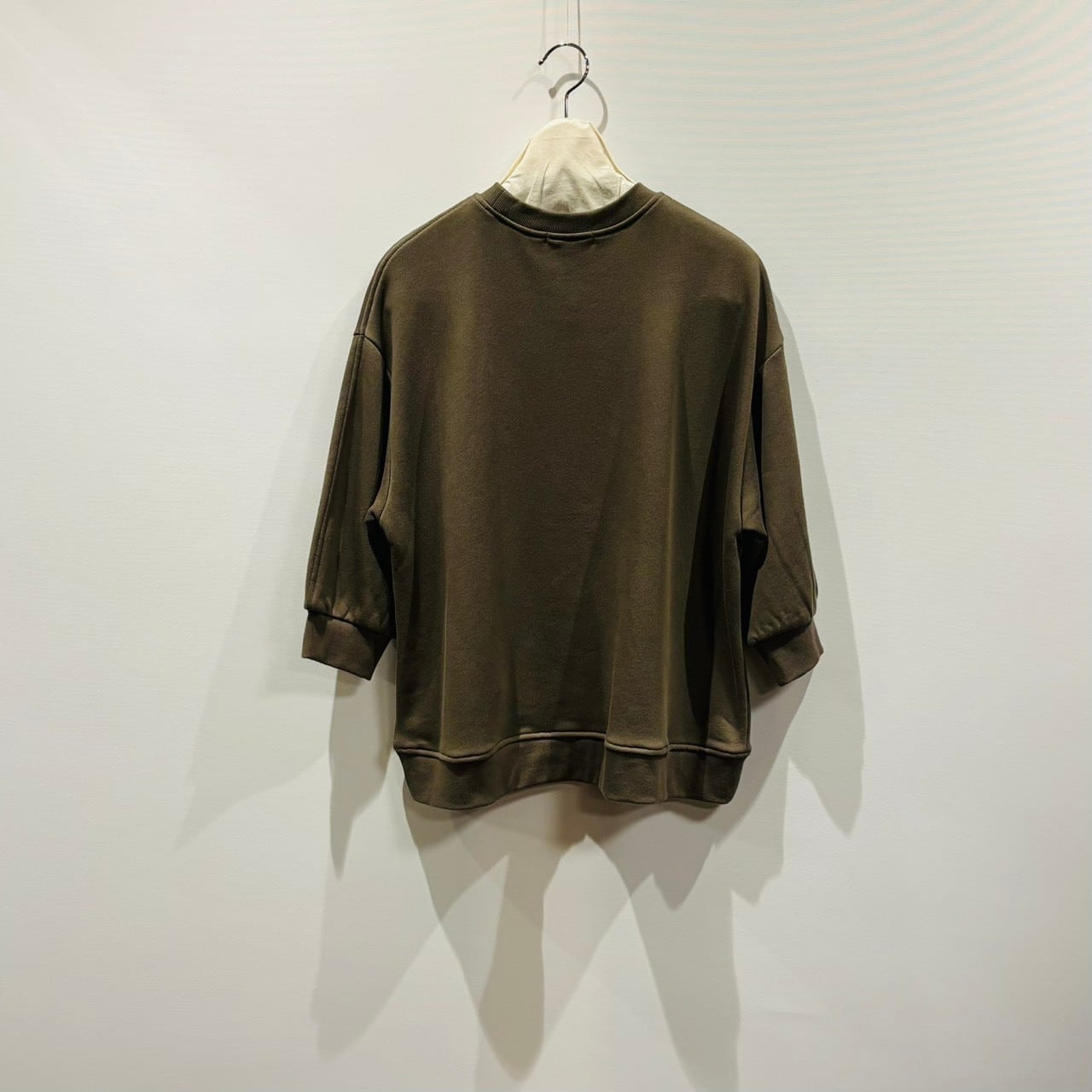粗針の裏起毛、七分袖のリブのプルオーバー。