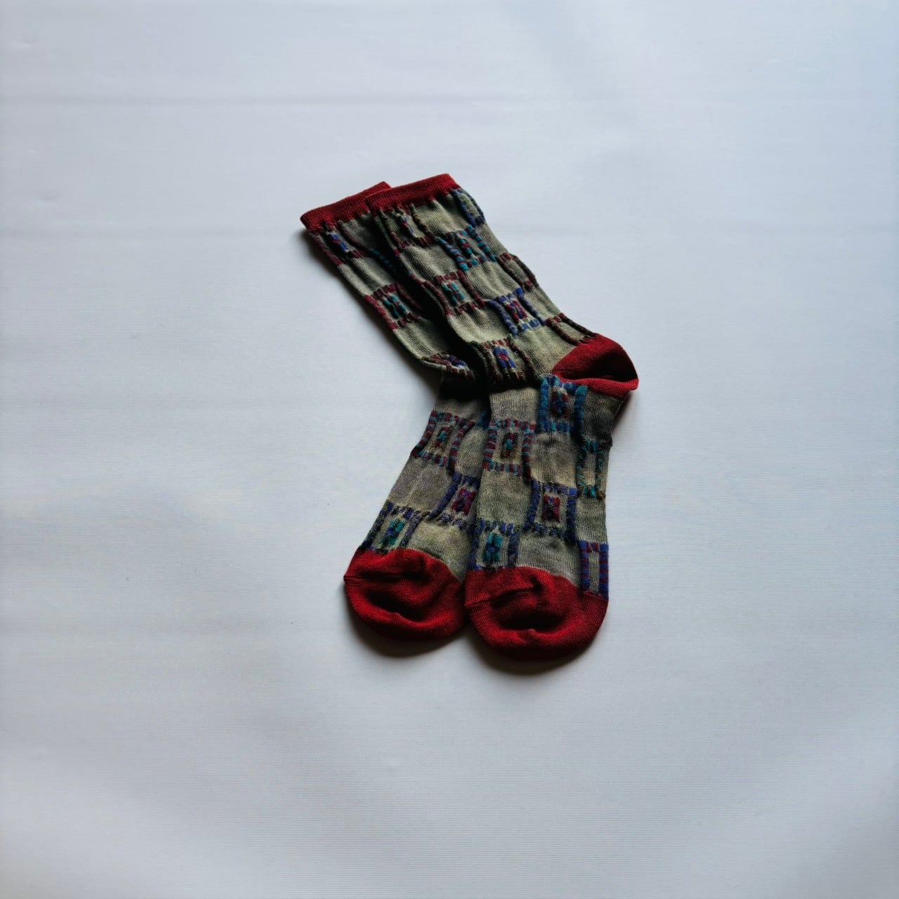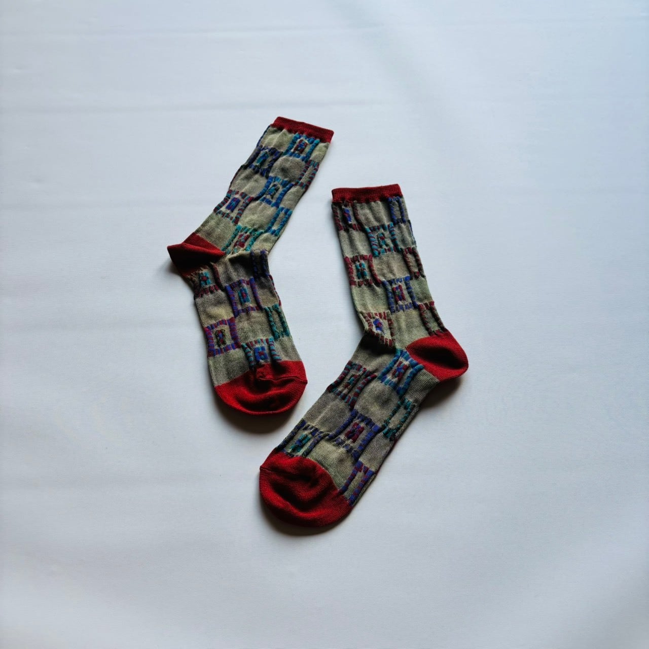 FUGAFUGA タイル柄ミドルゲージソックス (オレンジ)5101815