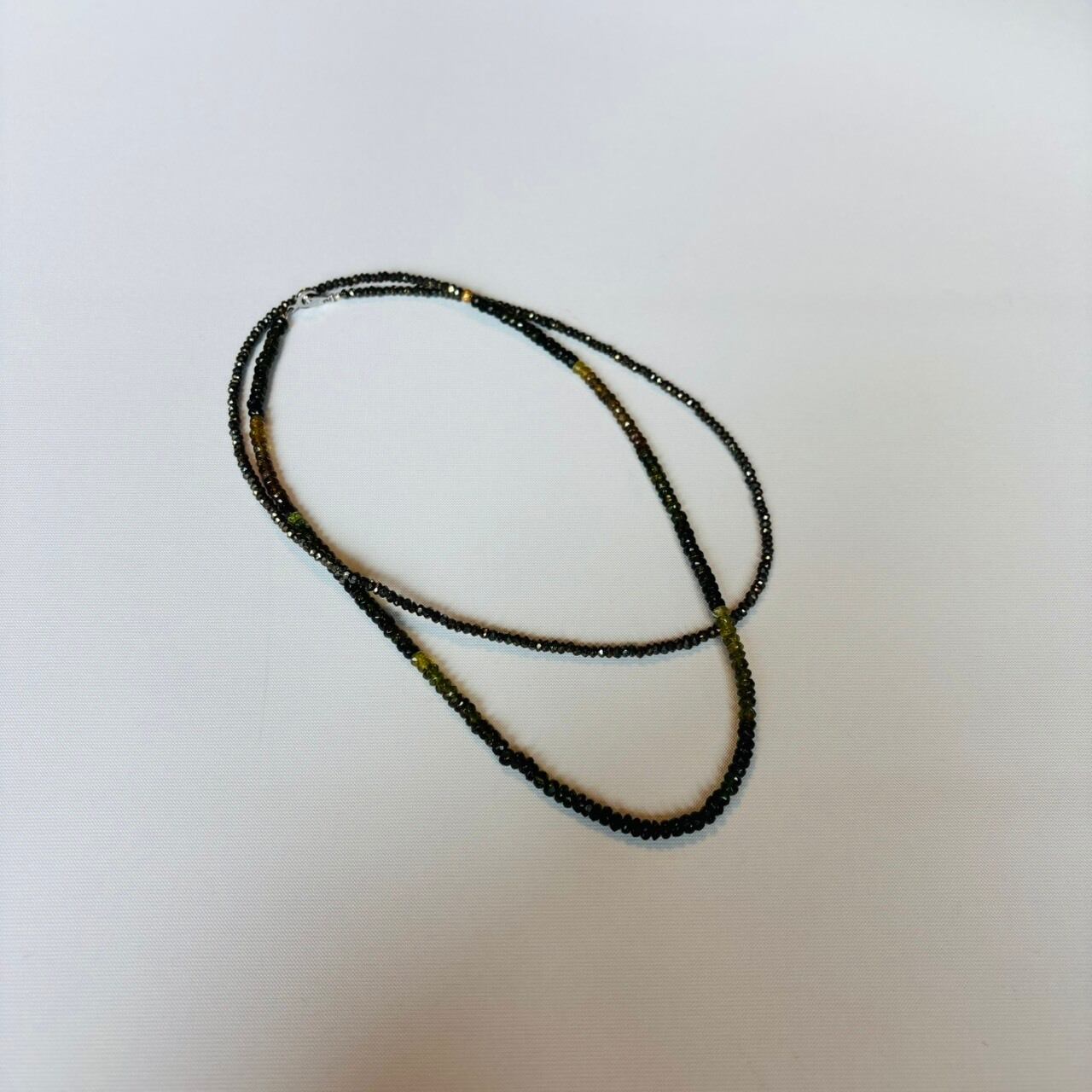 彫刻された18K丸玉を組み合わせたロングネックレス。
