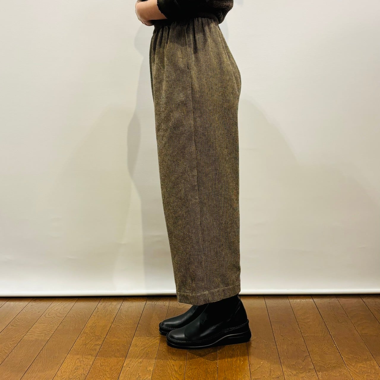 千鳥チェックが新鮮な起毛加工のコットンパンツ。