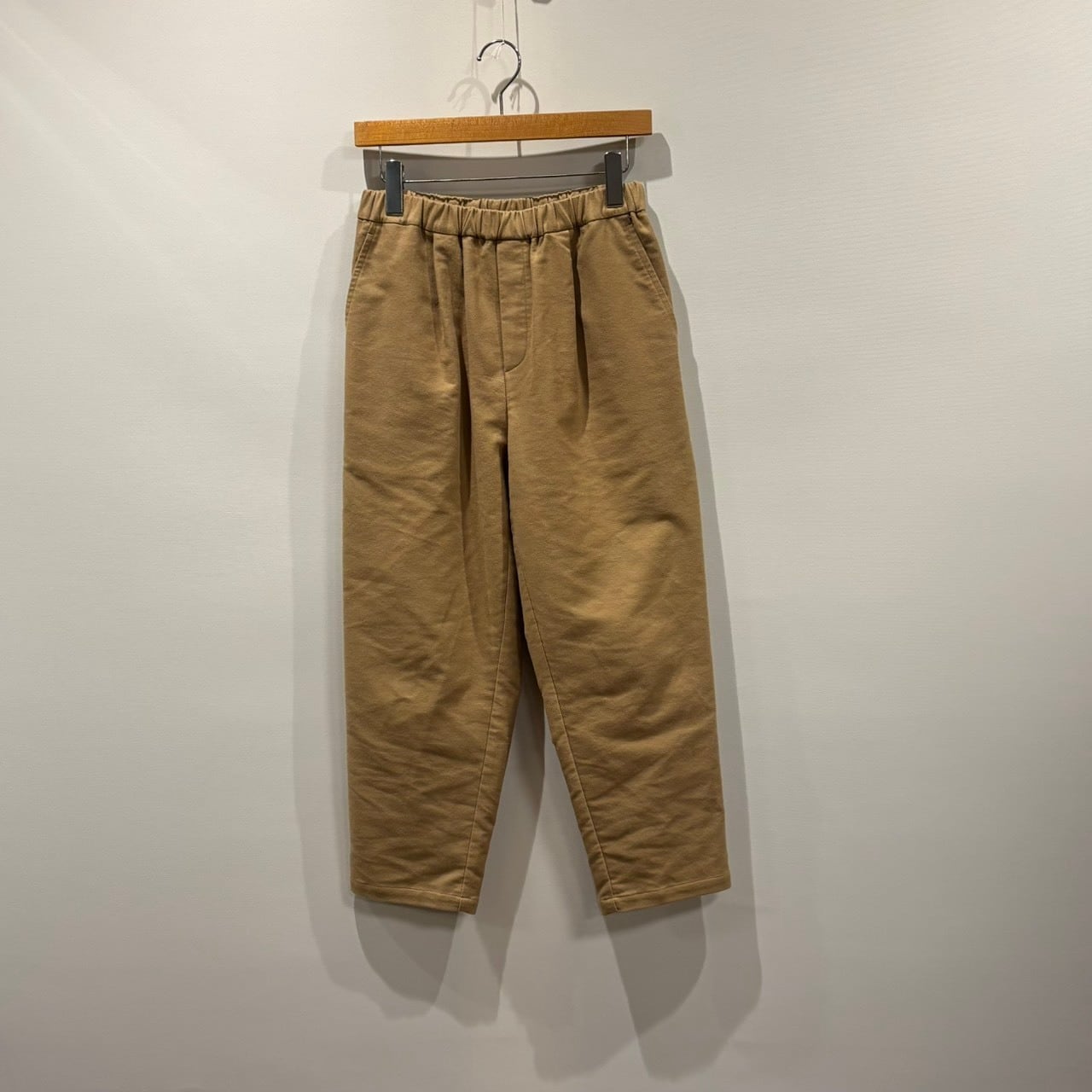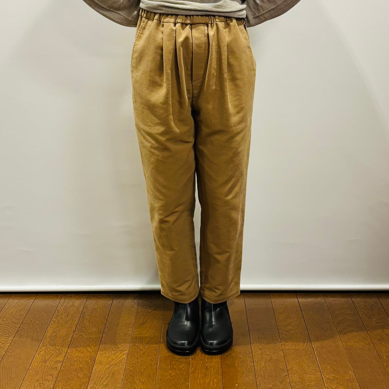オーガニックコットンスエードのタックパンツ。