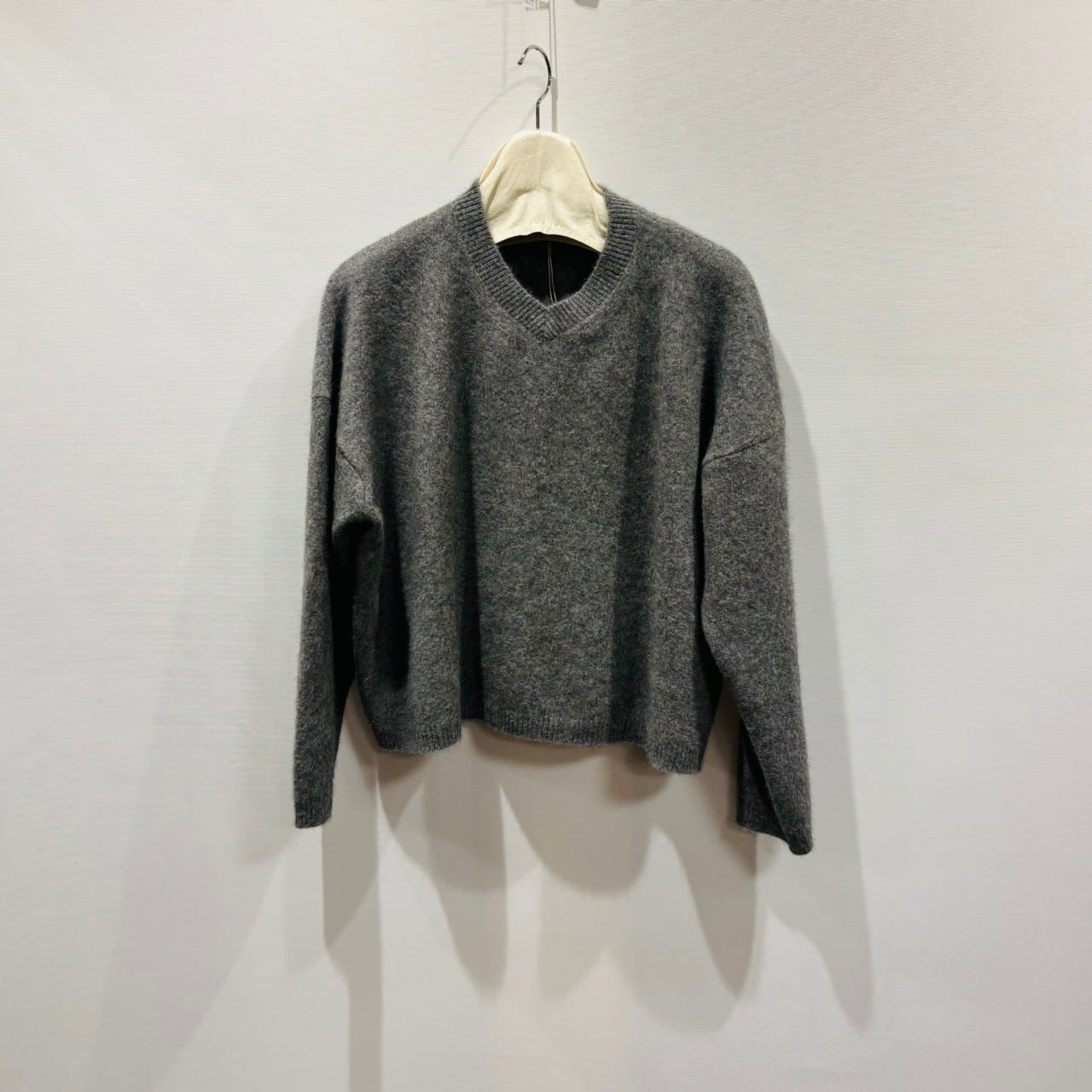 denier Vネックラクーンニットプルオーバー (グレー)511152