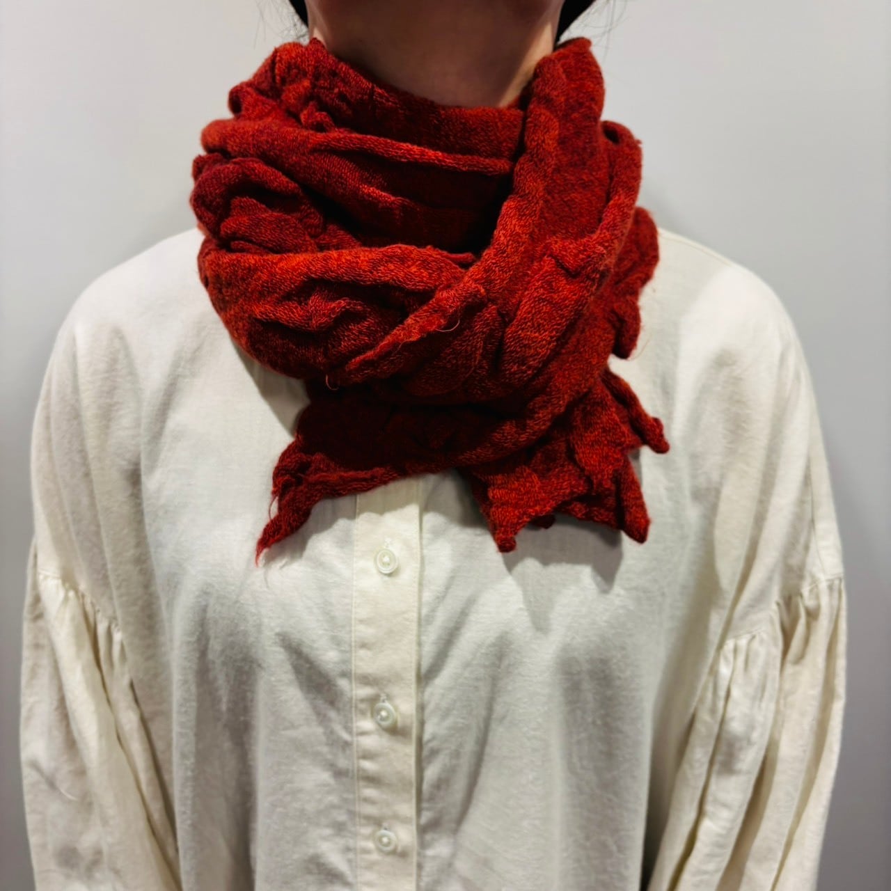 一巻きするだけで暖かく、コーディネートの差し色にもなりますよ。