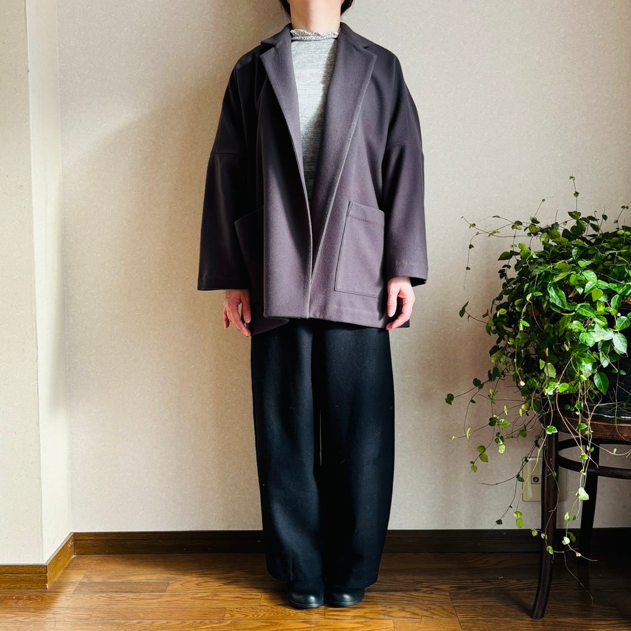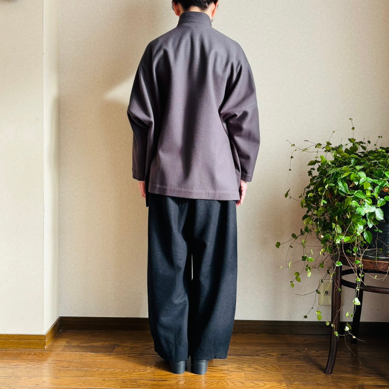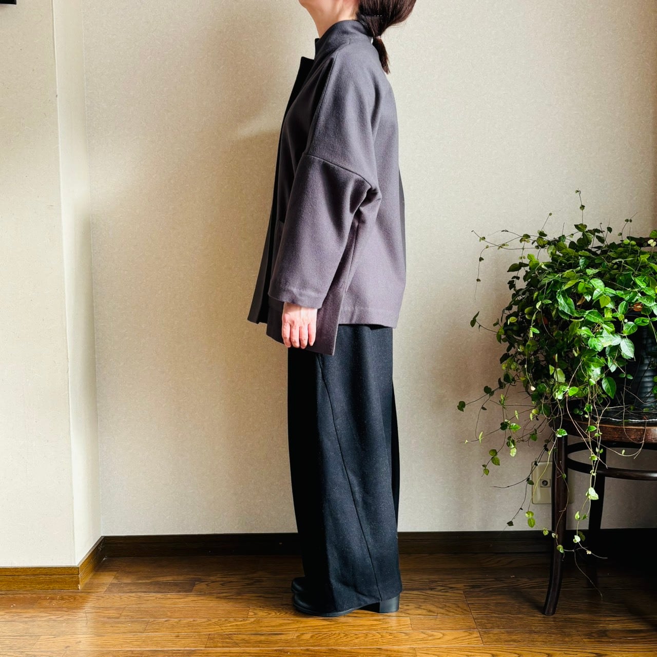 ロイヤルジーロンウール)を使用したルーズスタンドカラージャケット。