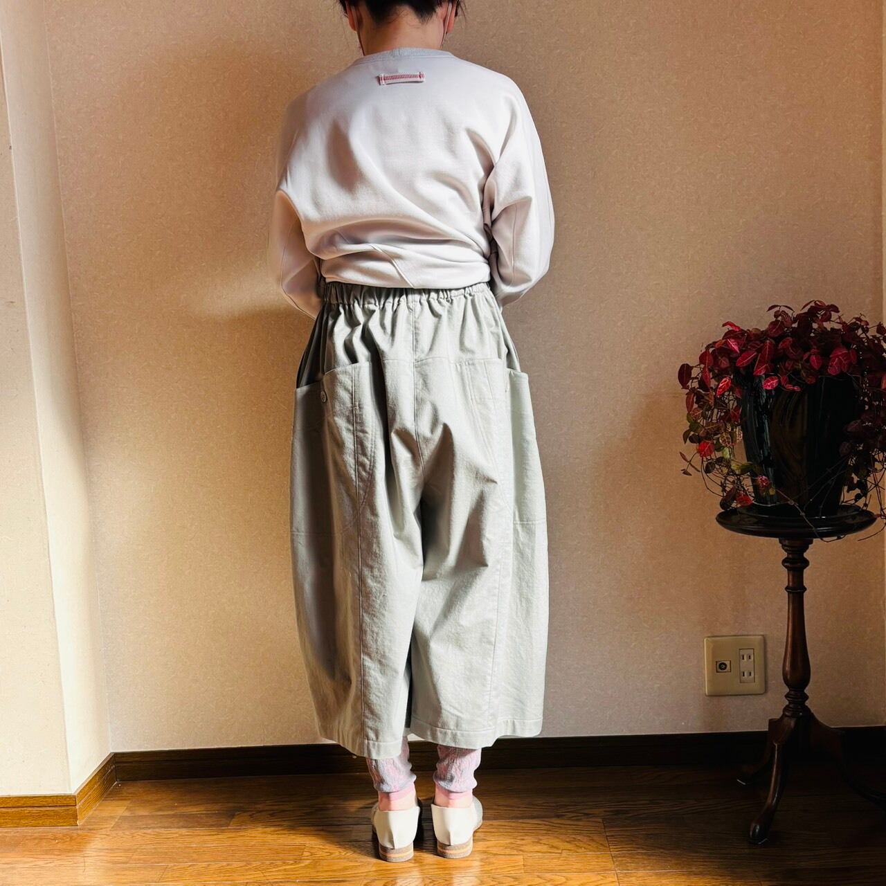M.&KYOKO コットンストレッチガウチョパンツ (グレー)602143