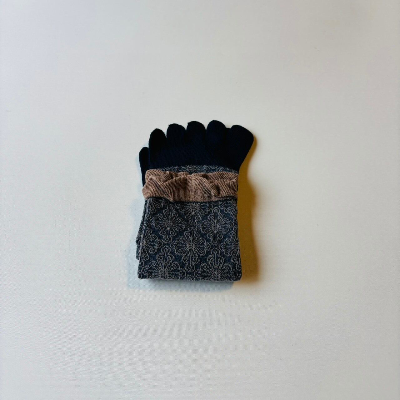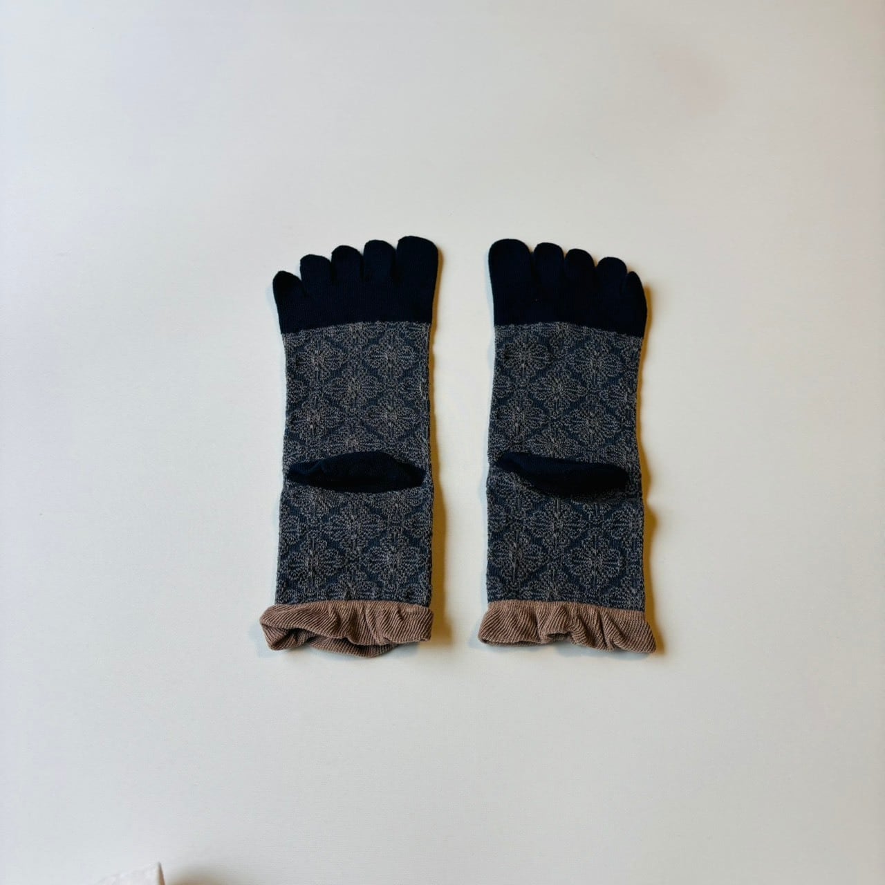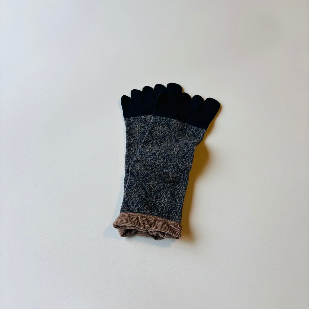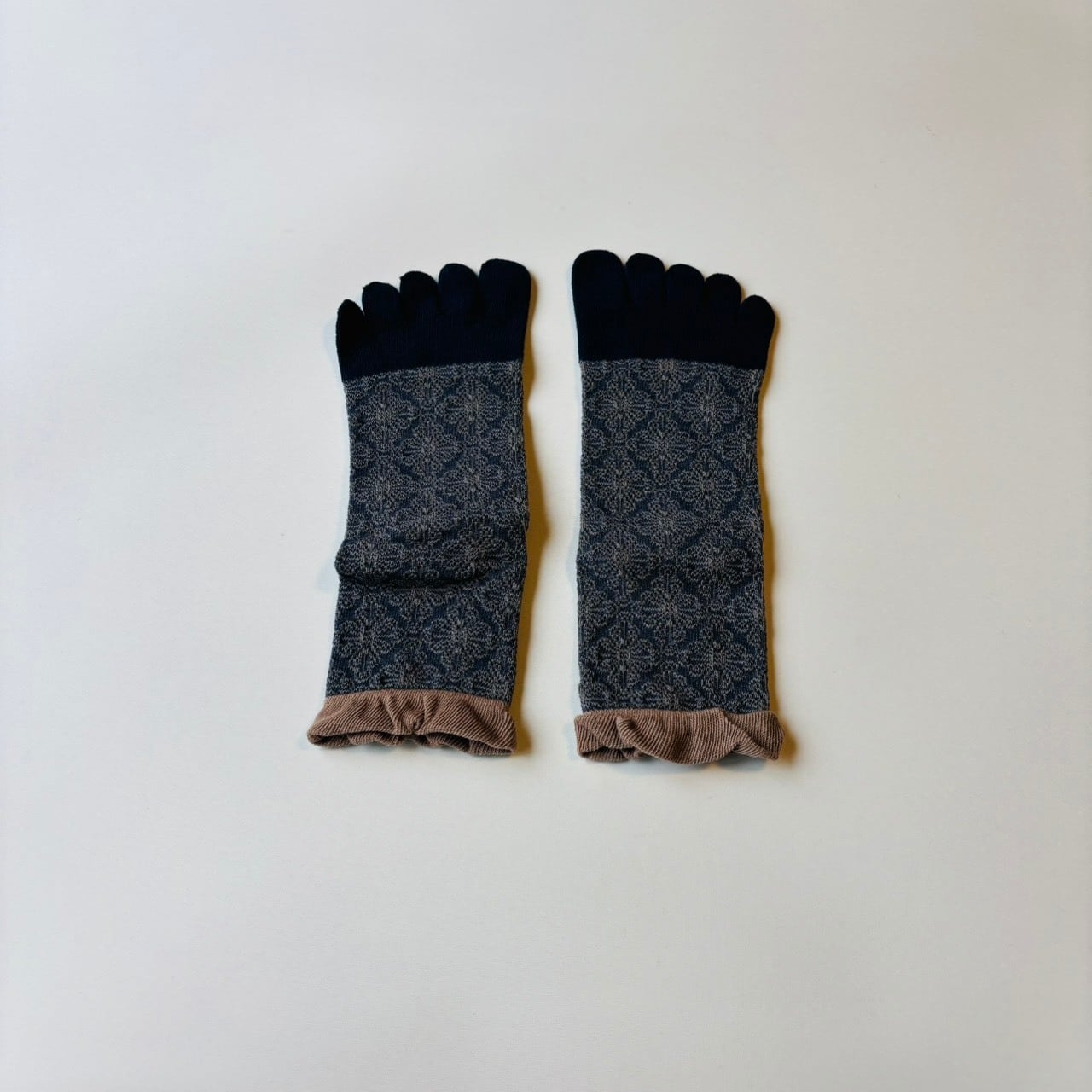 おもてなし靴下 ゆったり編み アラベスク柄五本指ソックス (ネイビー)6022811
