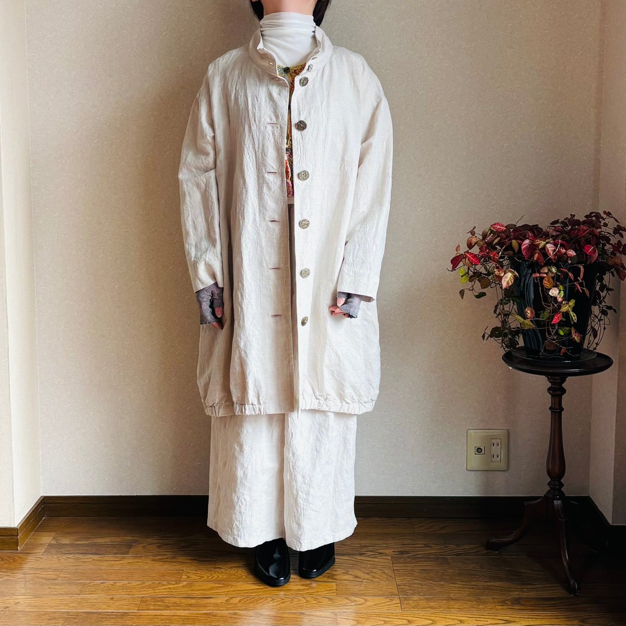 綿麻の軽くて着心地の良い、ジャガード織コート。