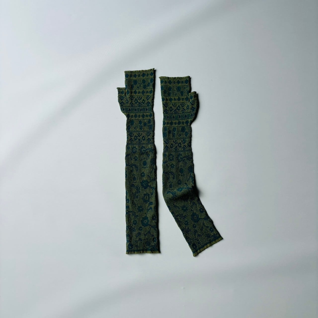 M.&KYOKO リバーシブルニットレースアームカバー (ブルー)603077