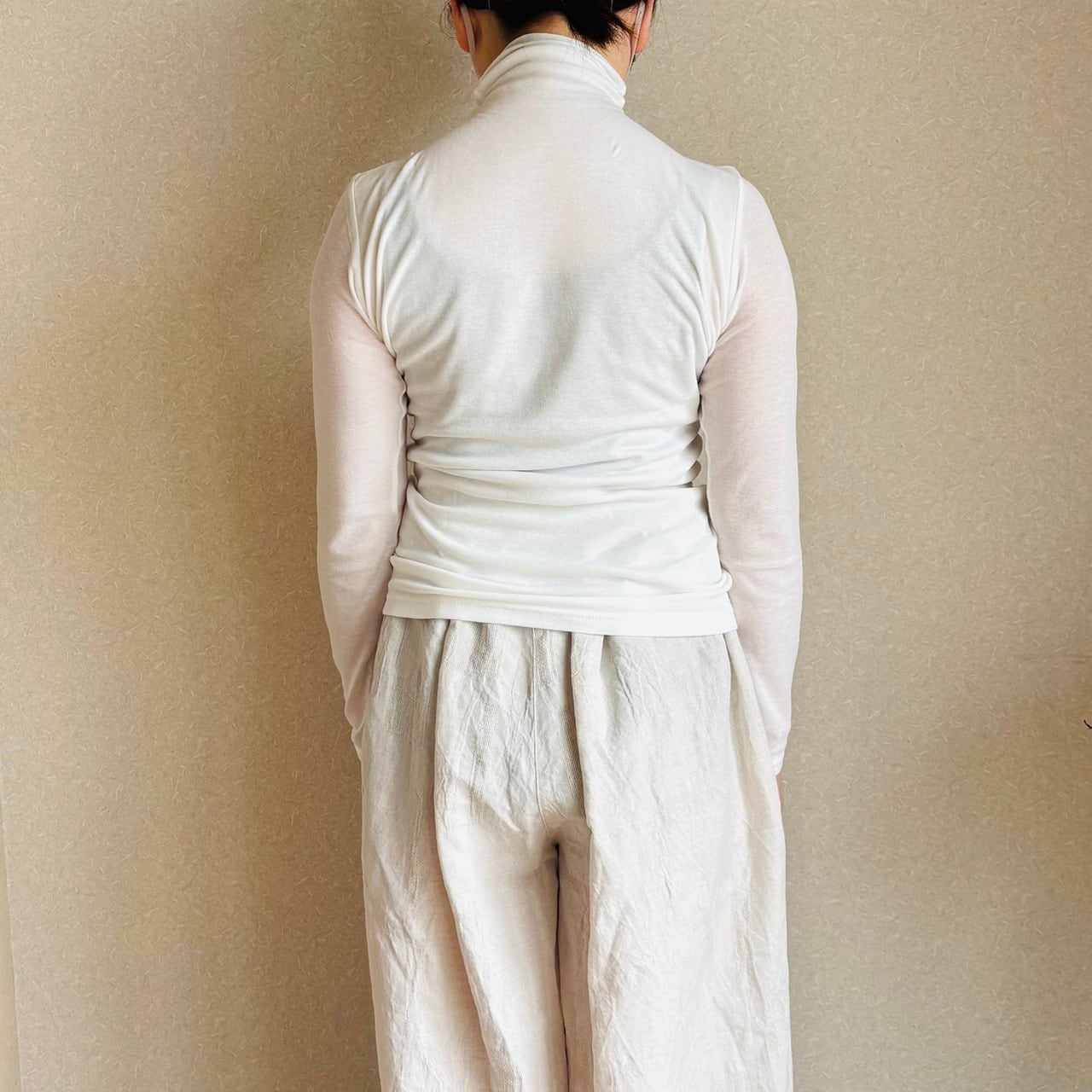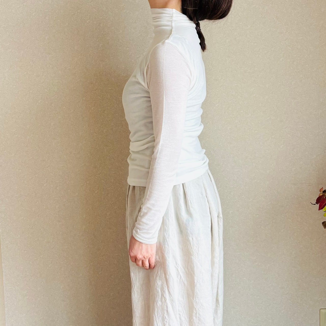 コットンシフォンの肌触りの良いタートルネックカットソー。