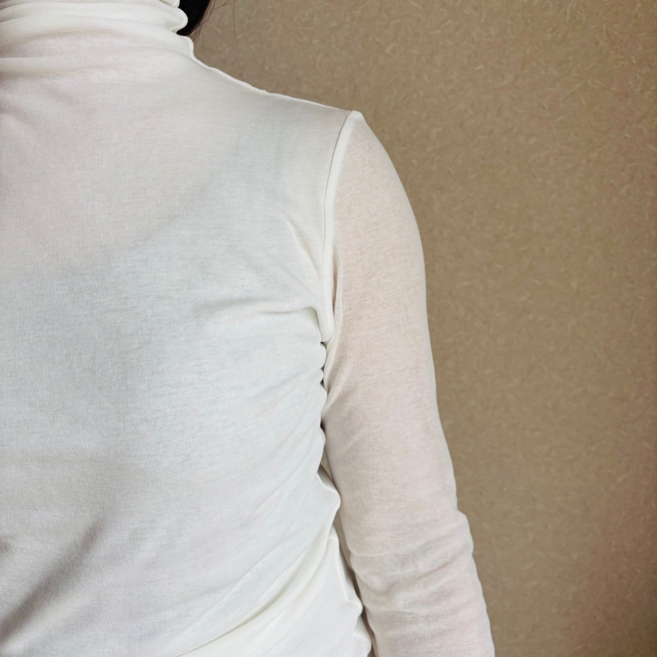 程よく伸びて、張り付かず、見頃が二重になっていて透けません。
