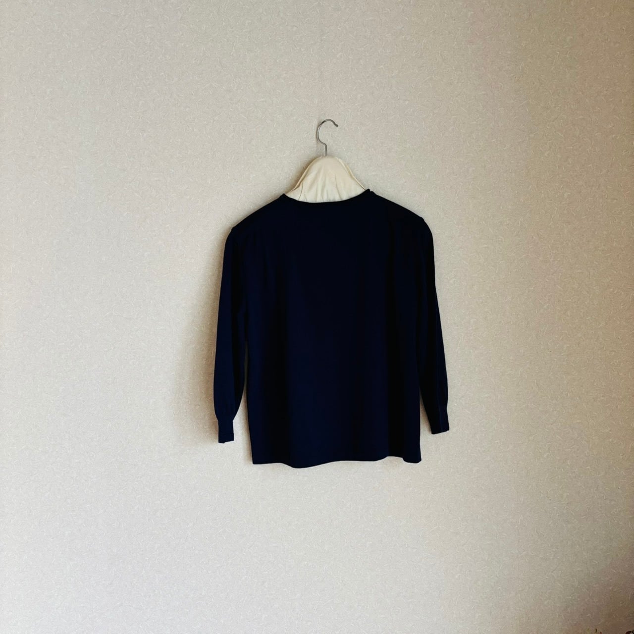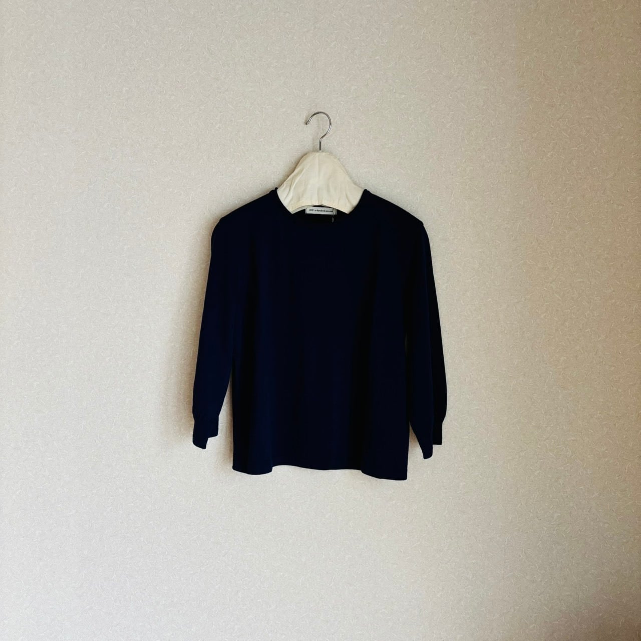 首詰まりで、八分のリブ袖で幅広いシーズン着ていただけます。