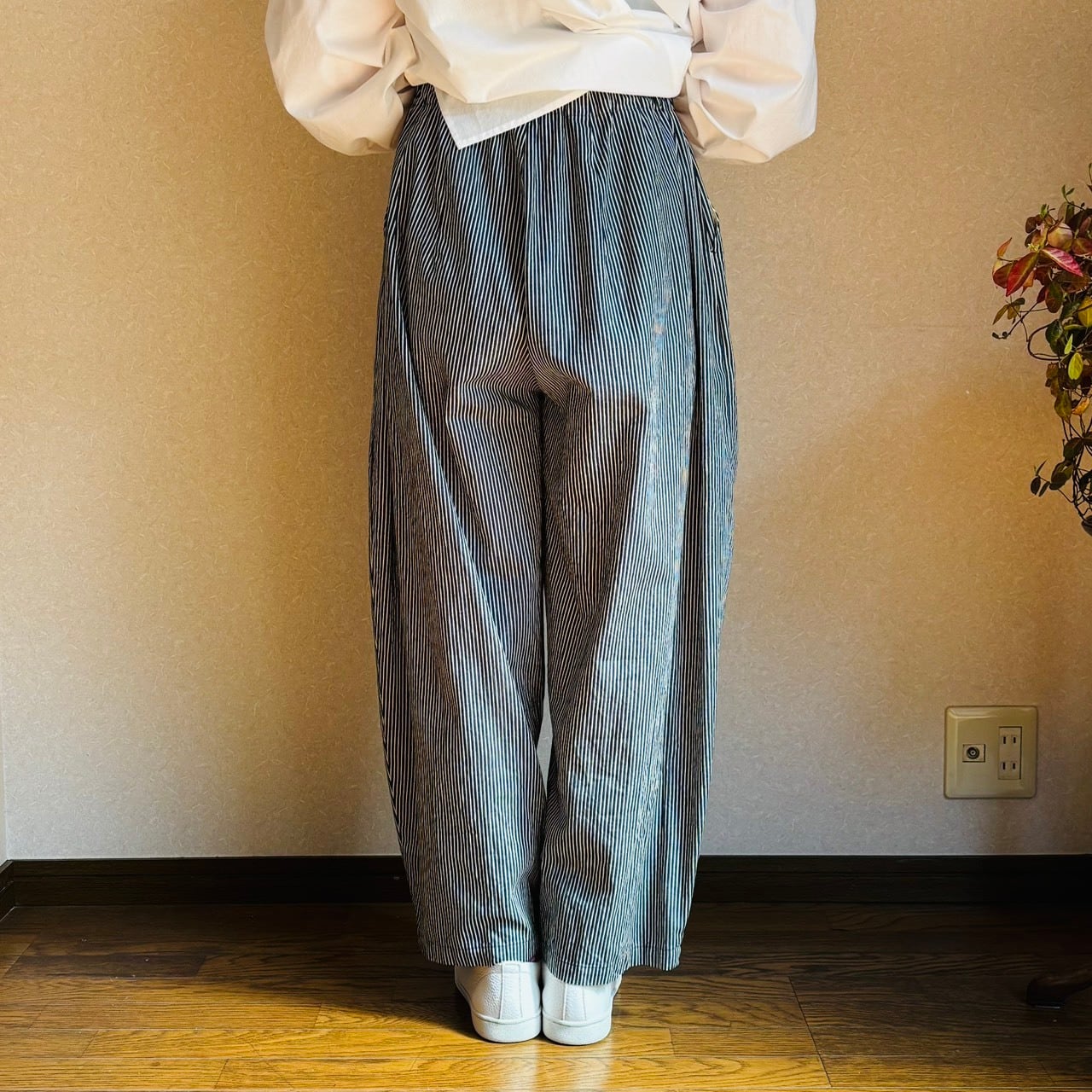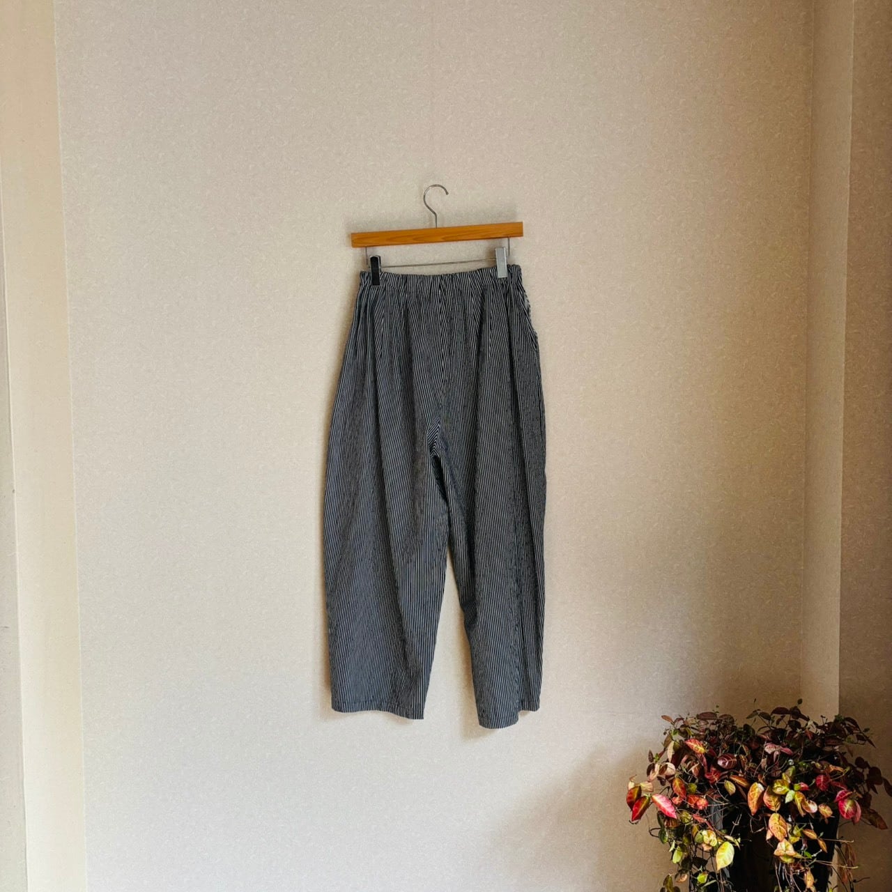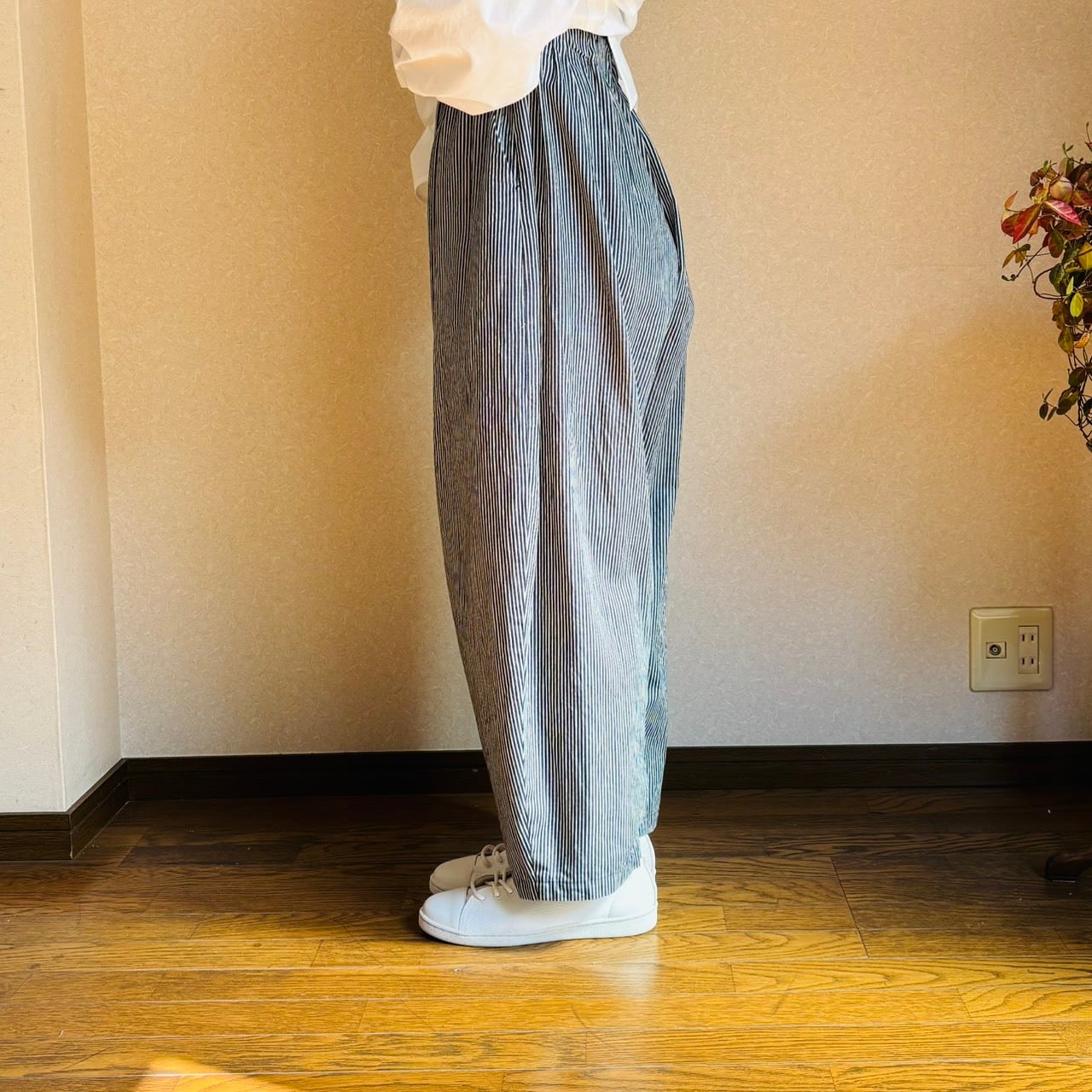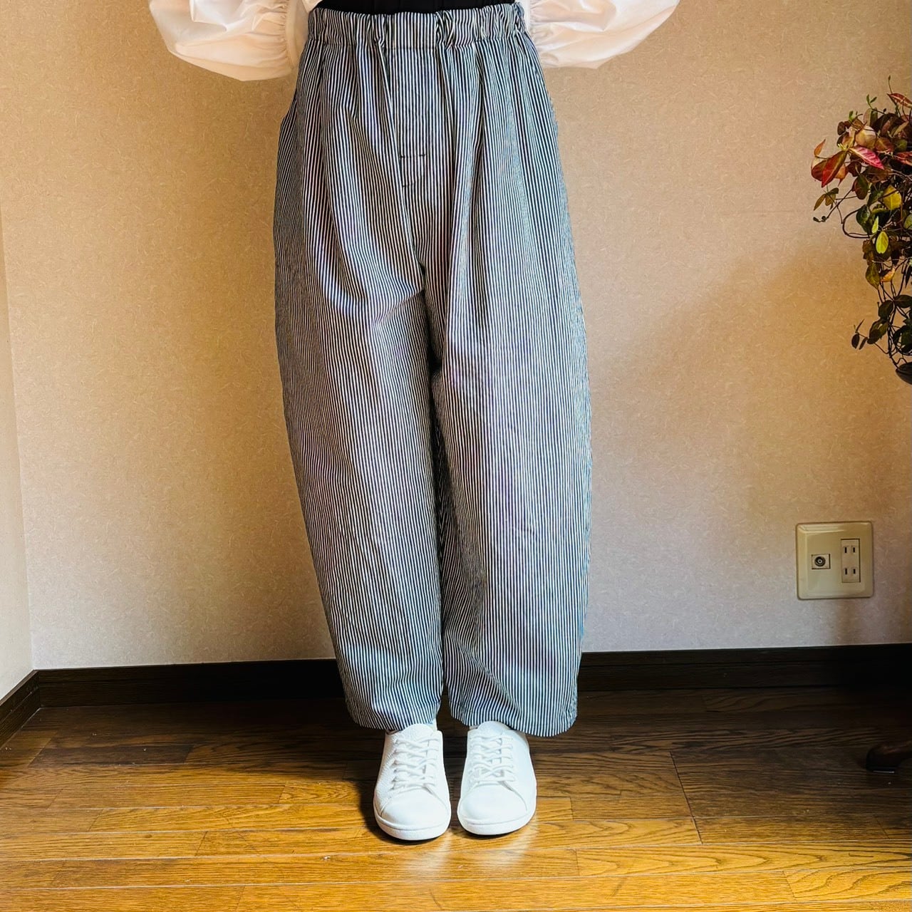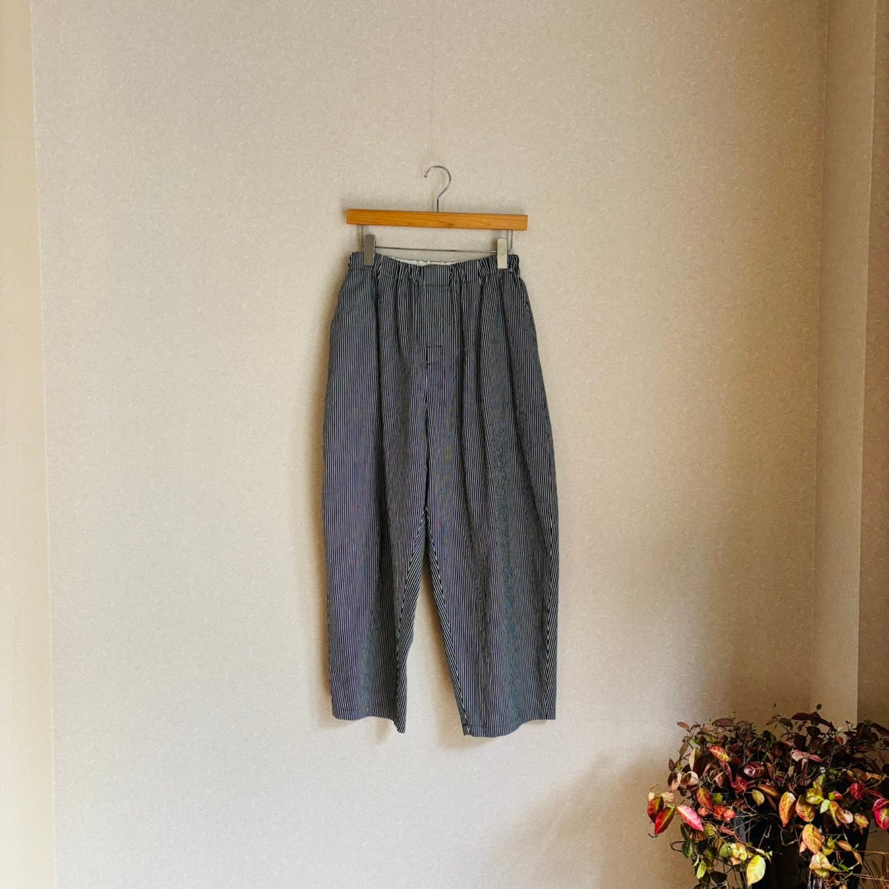 デニム生地のヒッコリーパンツ。