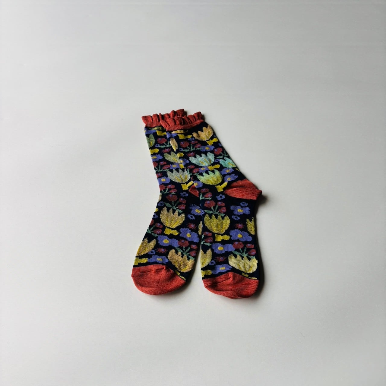 チューリップ柄のカラーのソックス。