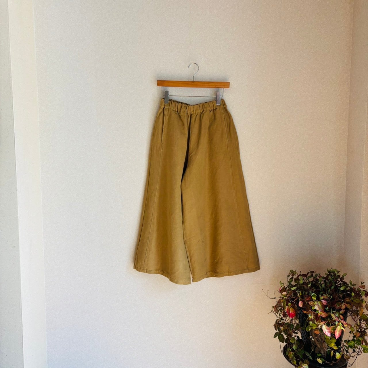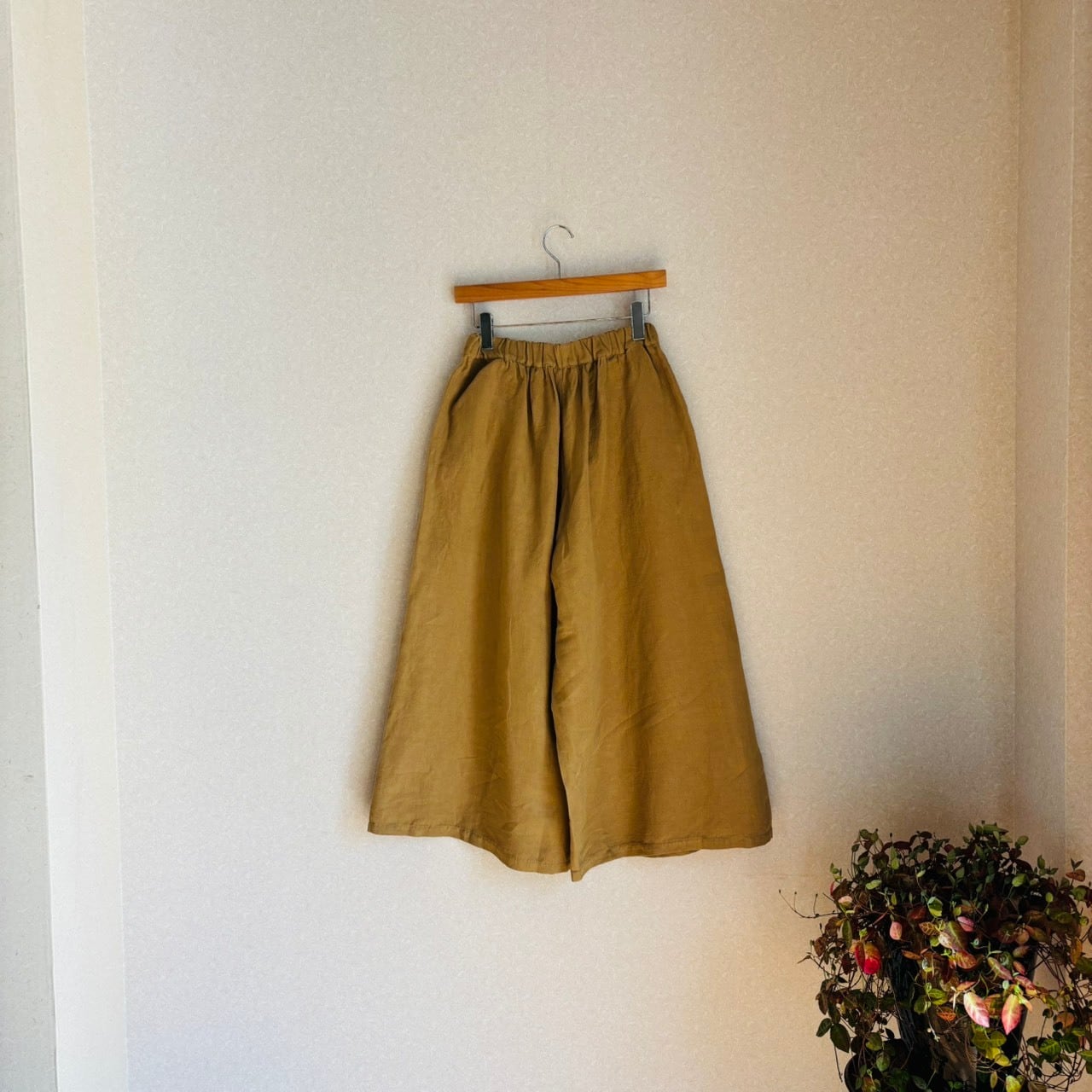 +2 リネンコットンツイル天日干しワッシャーワイドパンツ (キャメル)60286