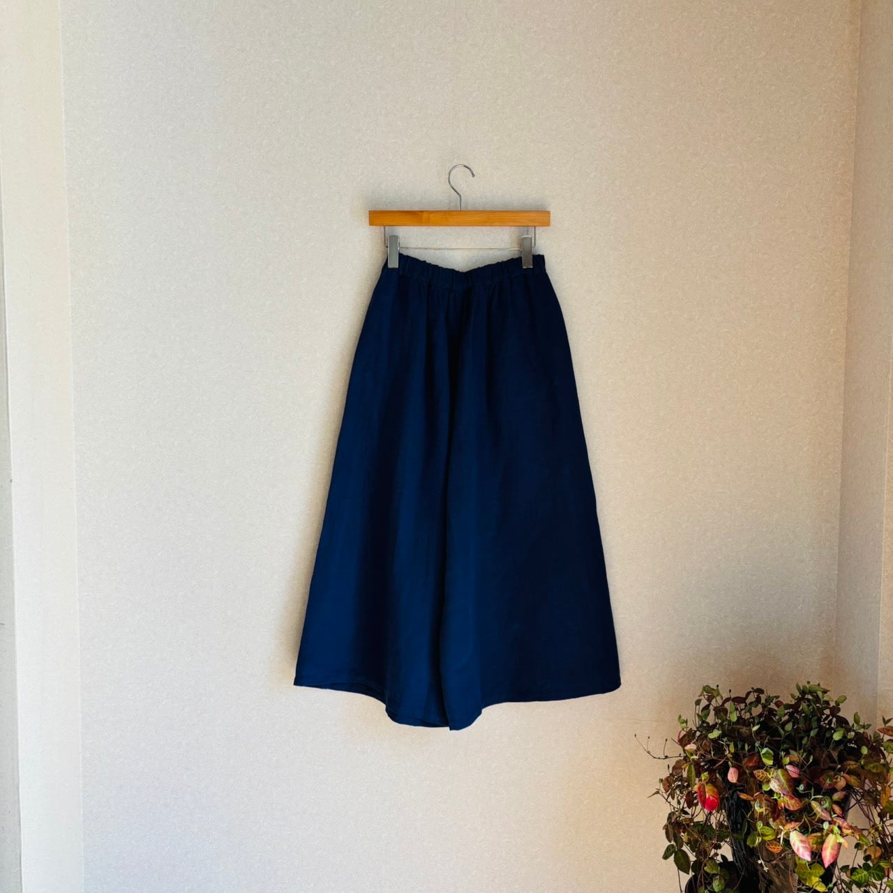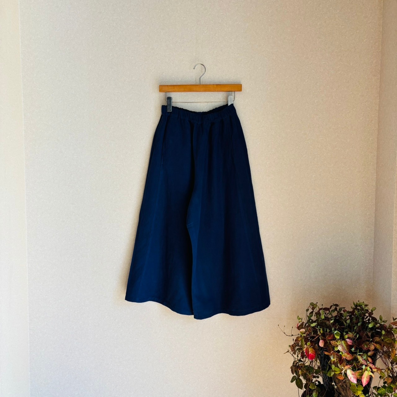 +2 リネンコットンツイル天日干しワッシャーワイドパンツ (ブルーネイビー)60287