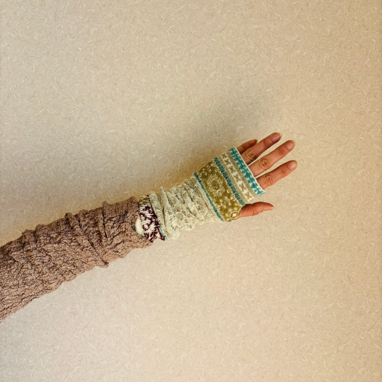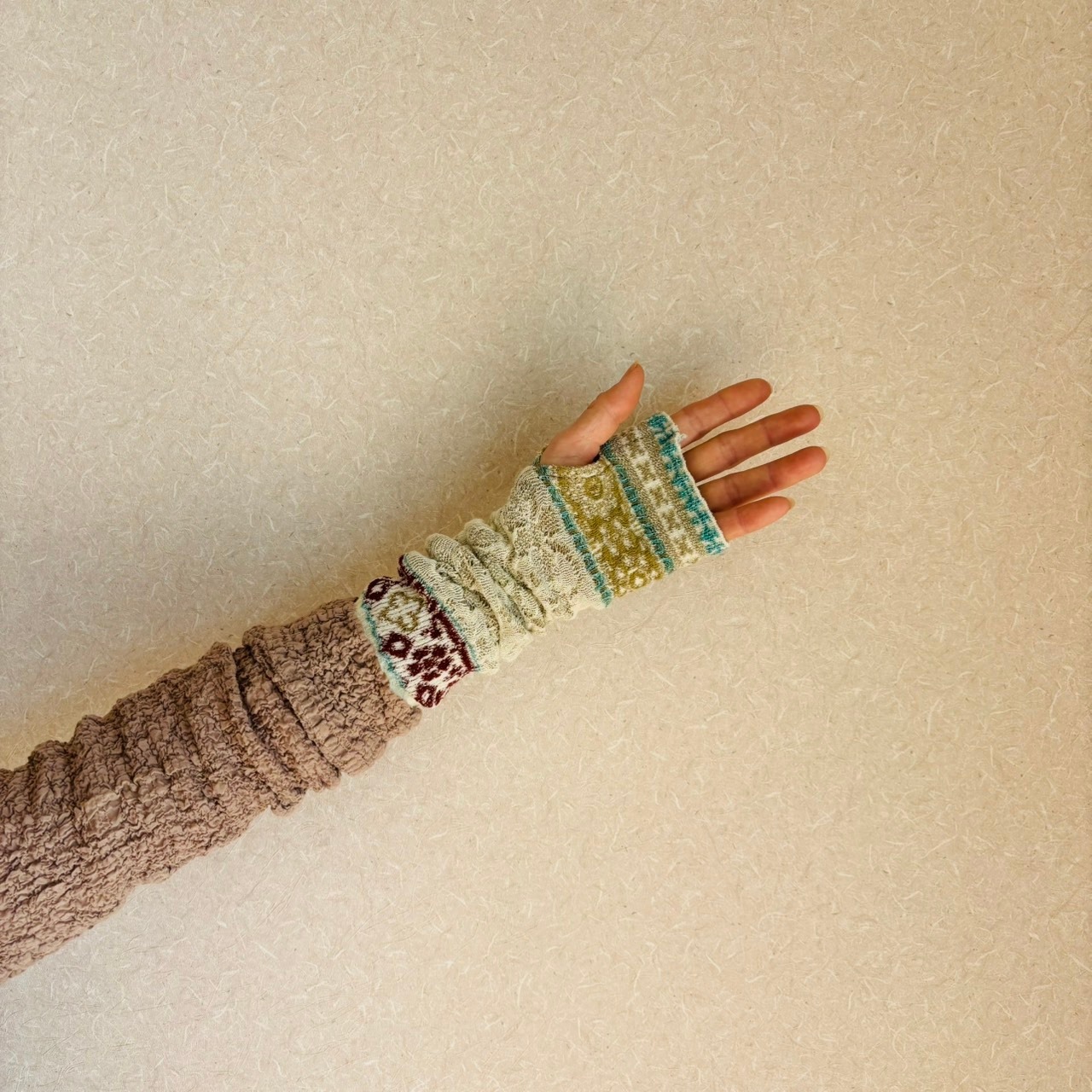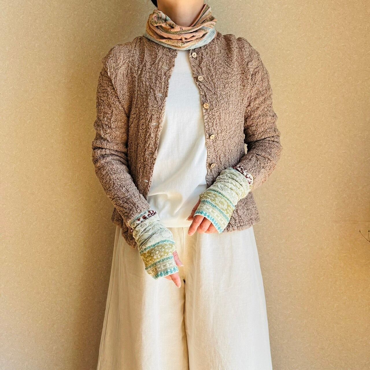 コットン素材のニットアームカバー。