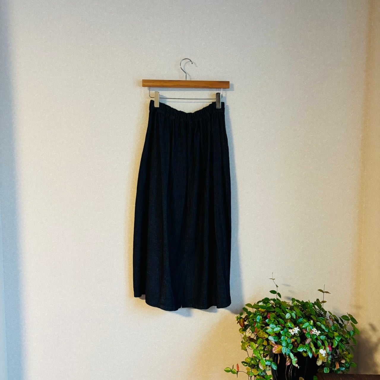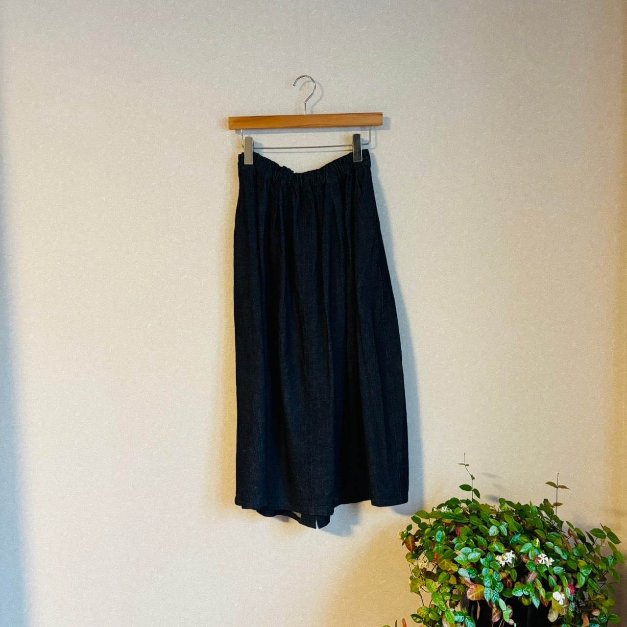 +2 コットンリネンデニム ラウンドスカート (ブルー)604255