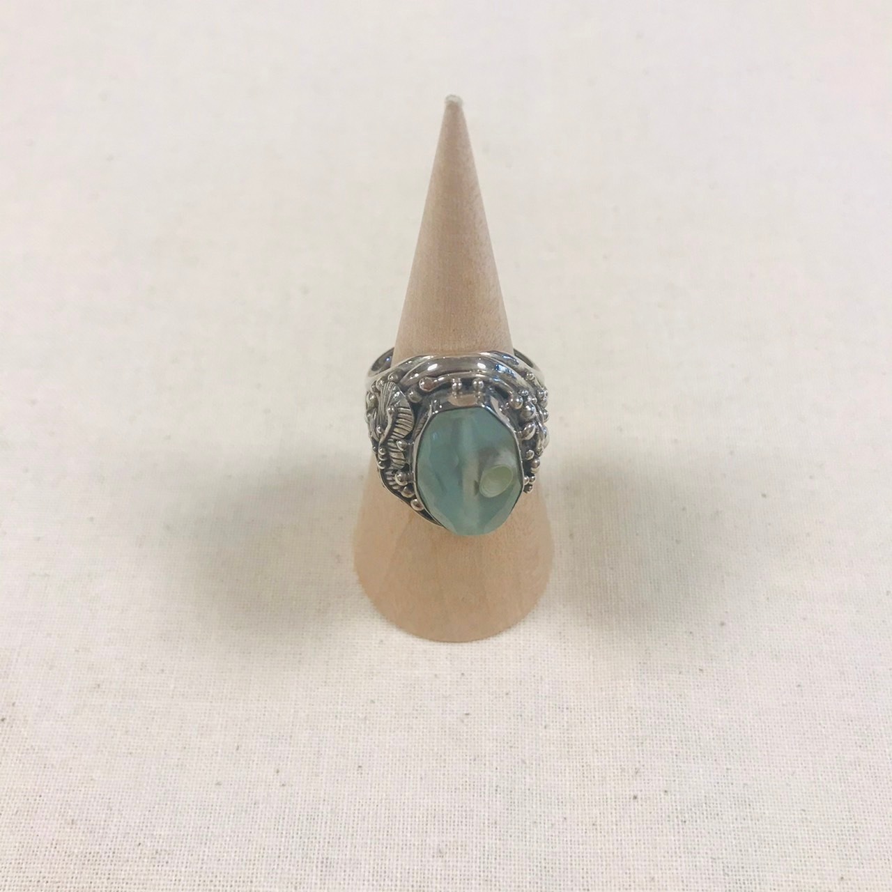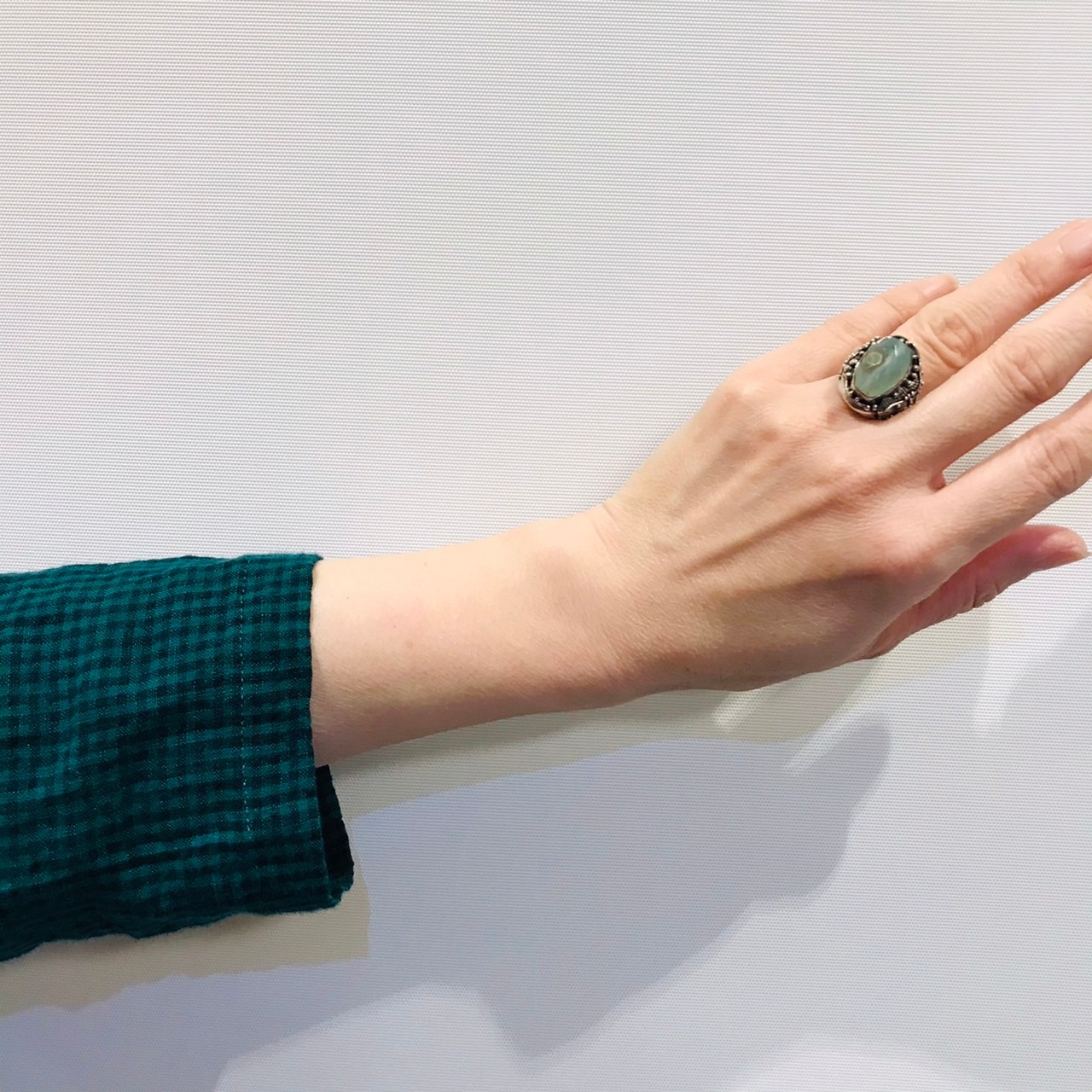 ランダムにカットされたグリーンカルセドニーを蔓と雫の