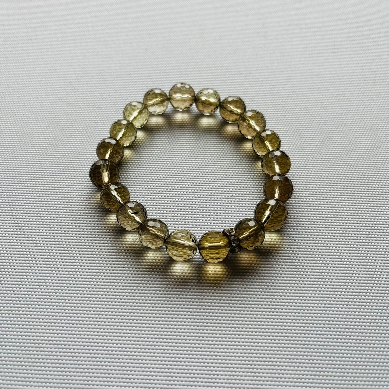 カットスモーキークォーツとスワロフスキーロンデルを組み合わせた