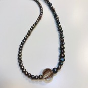 大小不揃いの淡水パールにルチルクォーツをトップに