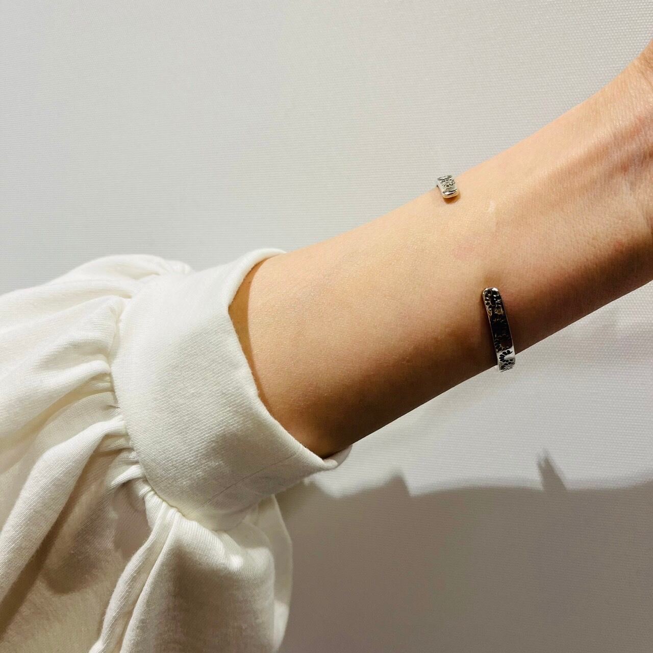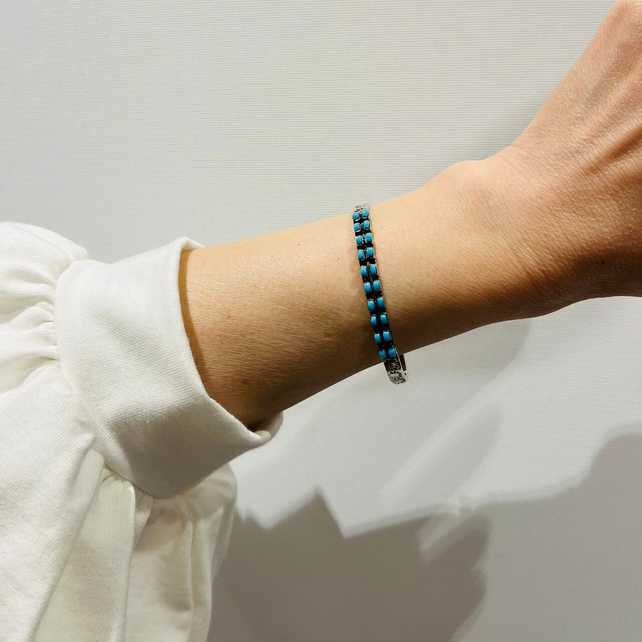 スクエアにカットされたトルコ石が20個付いたシルバーバングル。