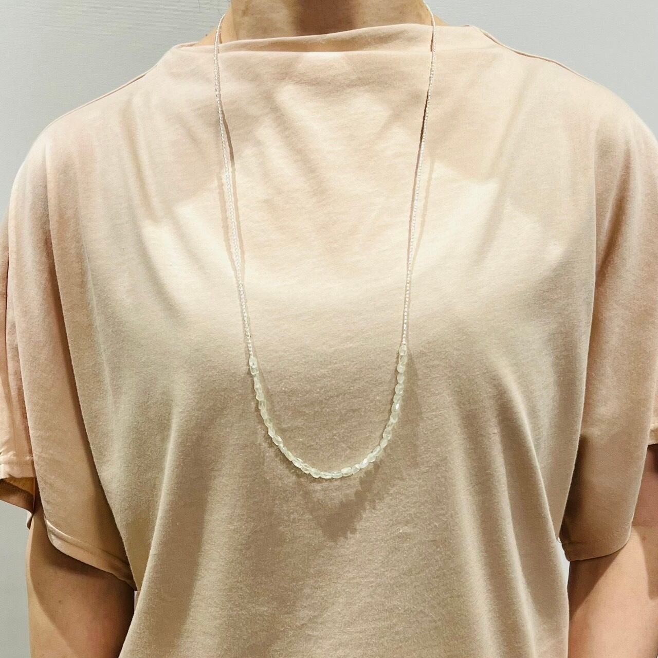 カットされたアクアマリンと左右に水晶と淡水パールで