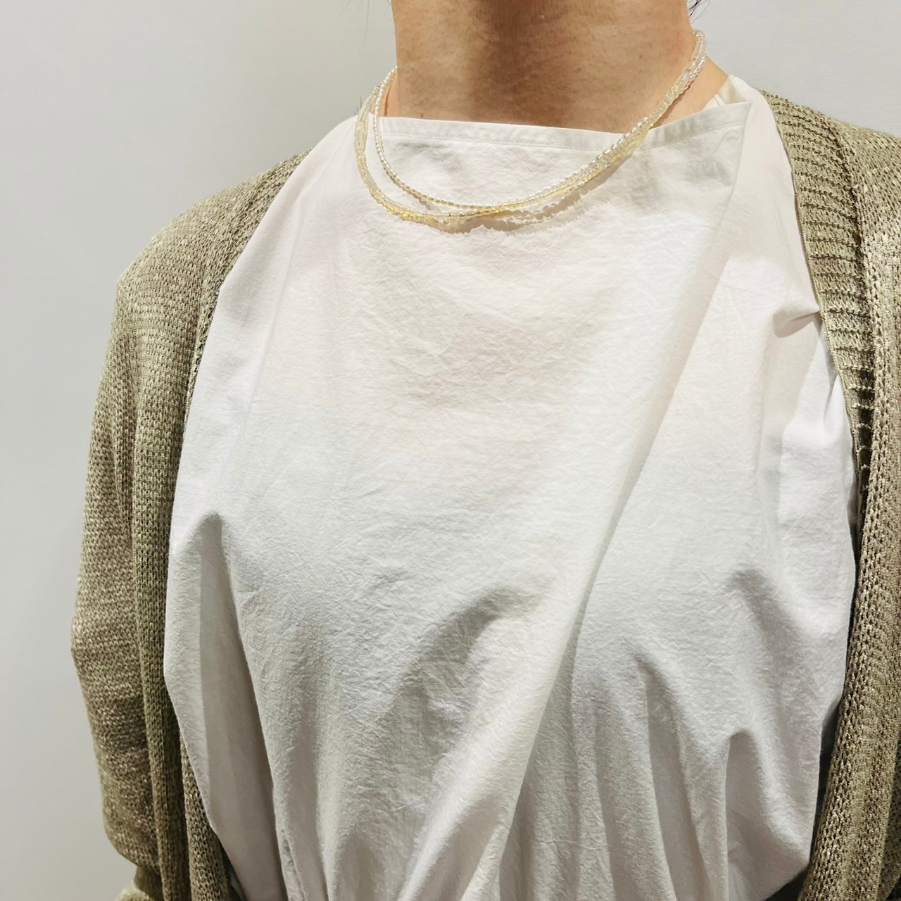 軽くて、落ち着いたやわらかな輝きが胸元を彩ります。