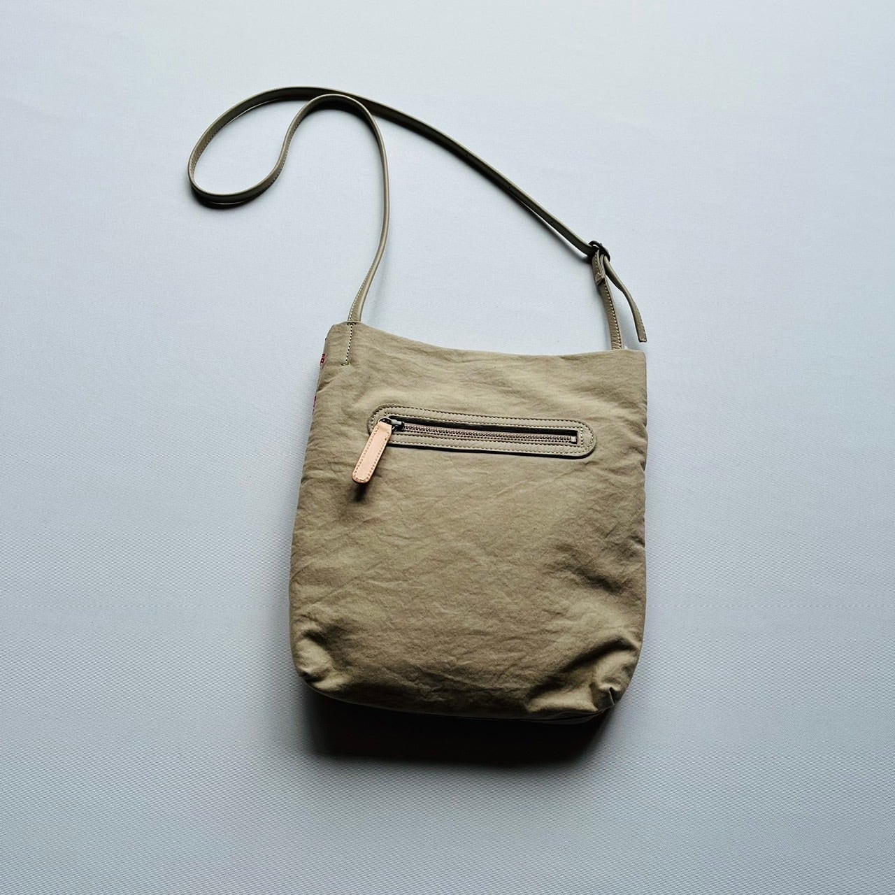 コットン素材に変形ドットの刺繍を施したショルダーバッグ。