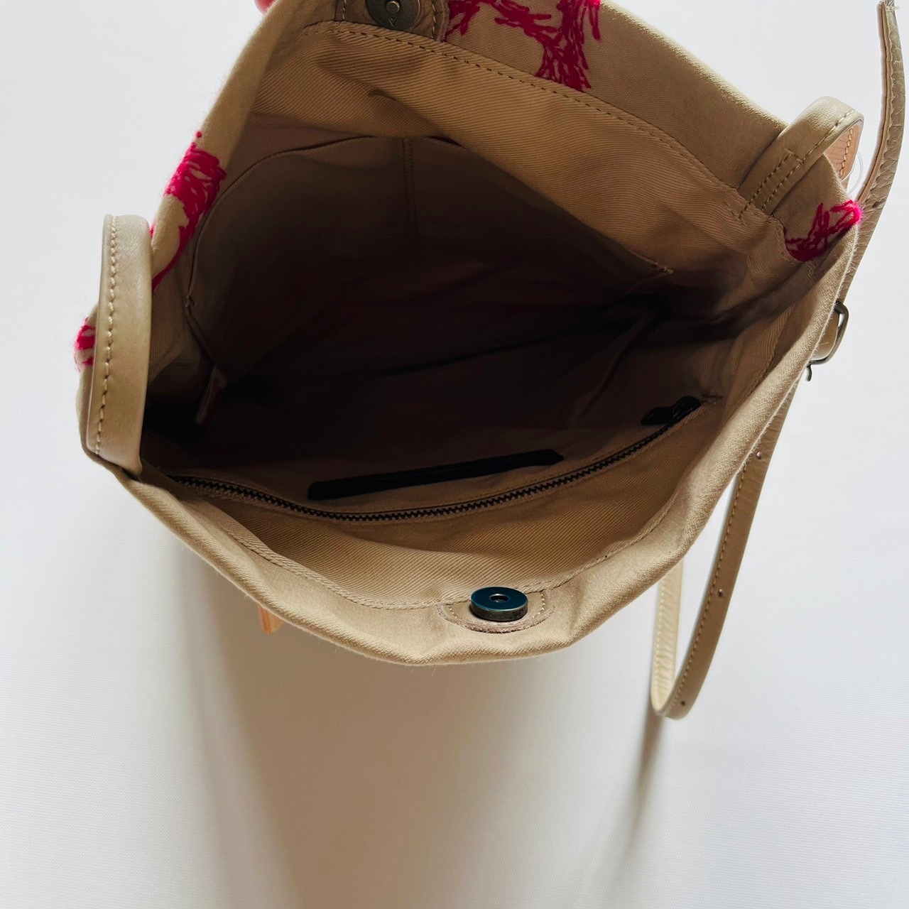 内側にポケットとファスナーポケットがあり、使い勝手が良いです。