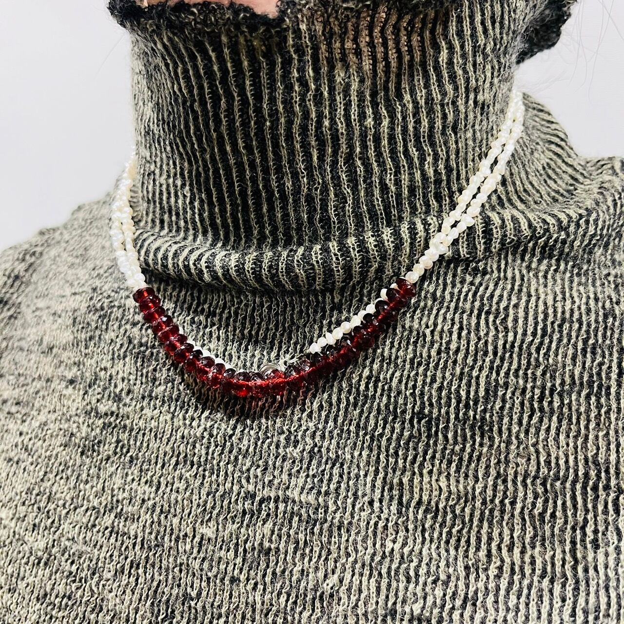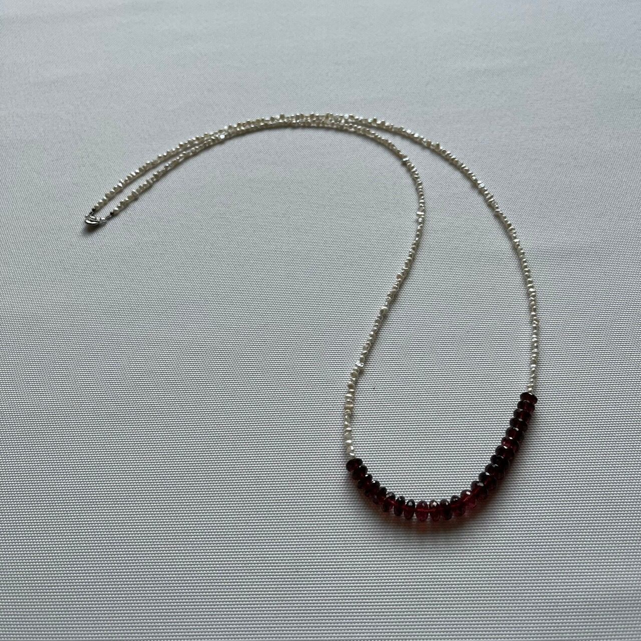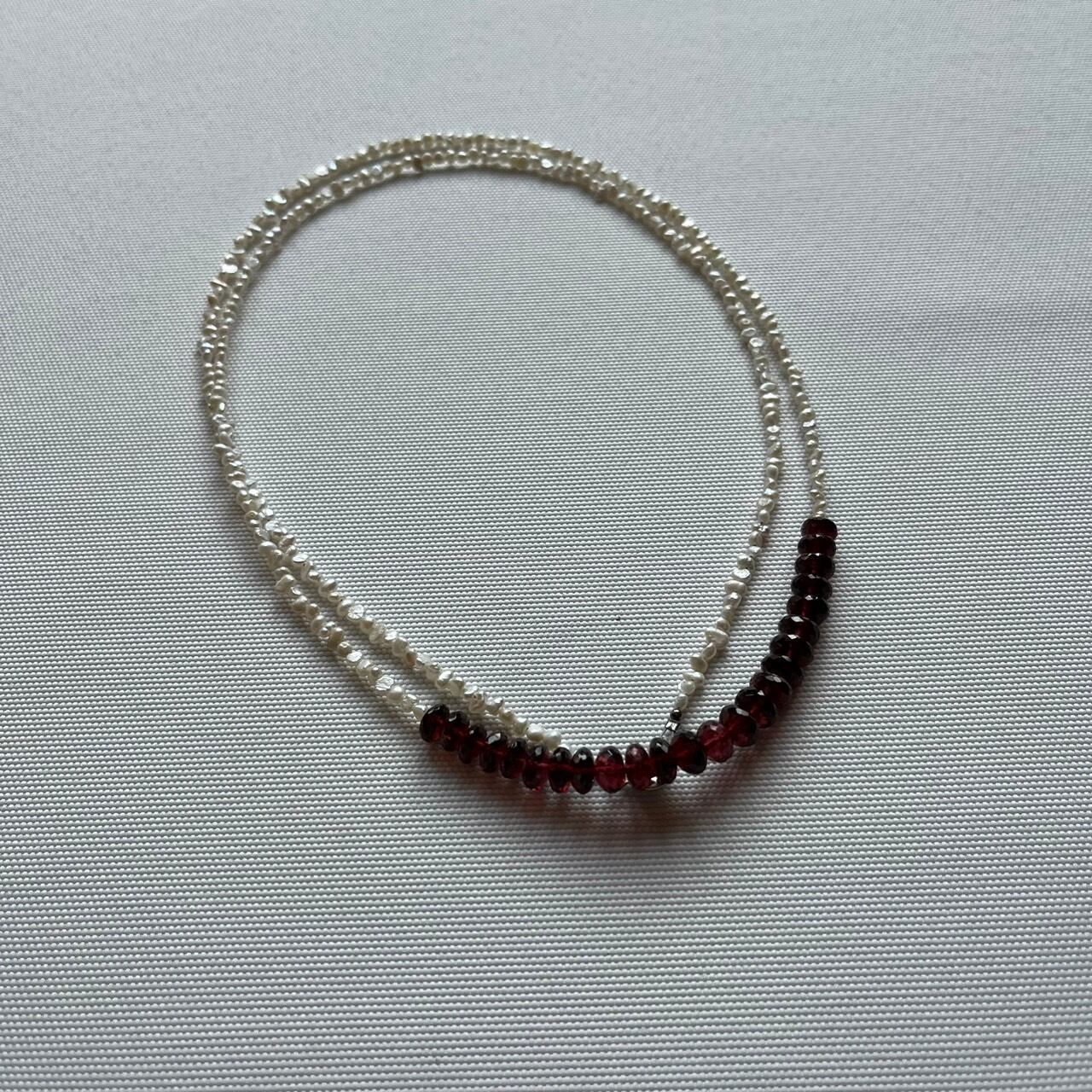ガーネットのセンターの位置を変えて、アシメトリーにつけたり、