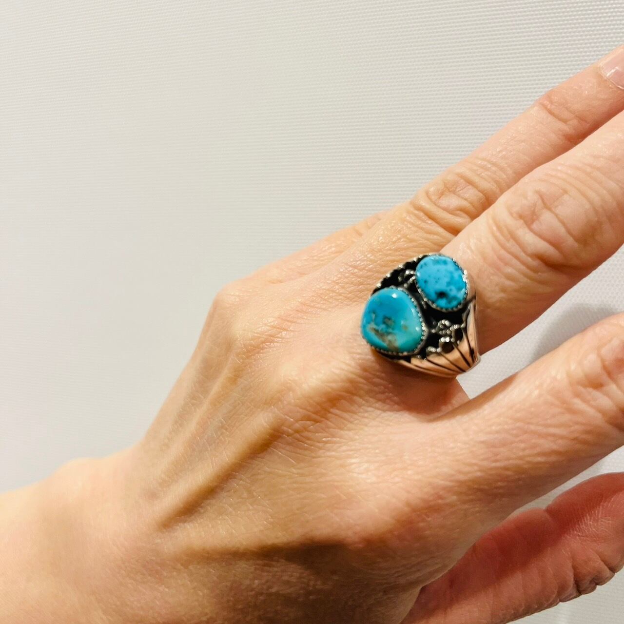 スカイブルーの2つターコイズをインディアンジュエリースタイルに