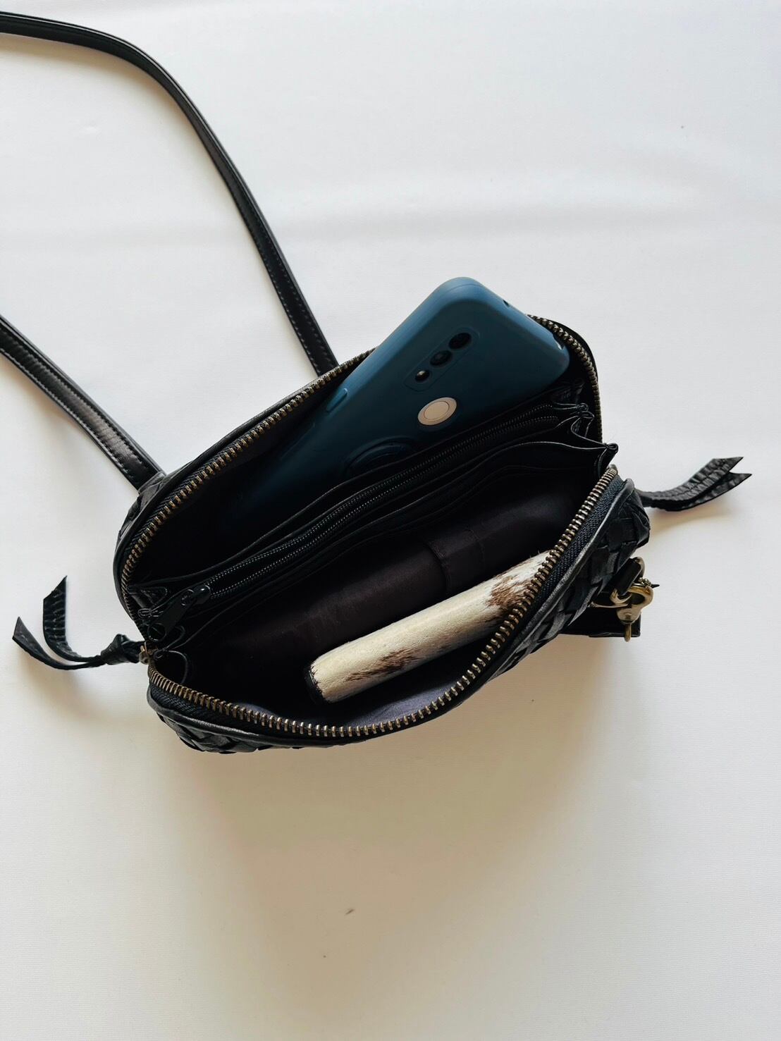 ポニーレザーを使用した柔らかなメッシュポシェット。